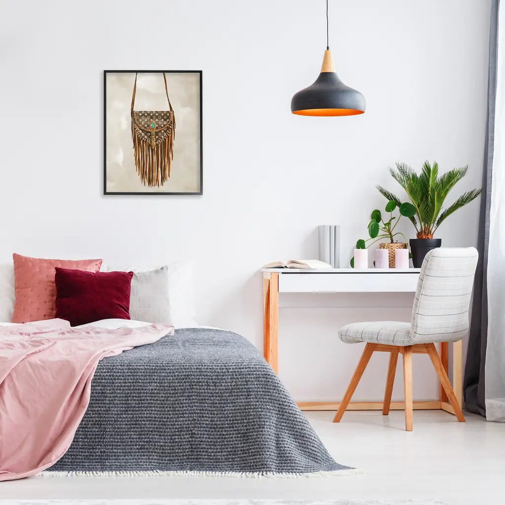 Add dimension to any room with our textured Framed Giclee Artwork. Our framed artwork is securely mounted into a 1.5-inch thick wood grain frame and ready to hang. Frames are available in three alluring styles: black, gray farmhouse and white. In addition, you should check out our oversized options if you want a statement piece. Stupell Wall Art is made in the USA.Features: Dimensions: 11 x 1.5 x 14 FramedFramed Giclee Products are available in the sizes 11"x14", 16"x20" or 24"x30". All Framed Giclee Products have a 1.5" Depth. Wall Art is Ready to Hang with Hardware Free Hanging. No installation required. For Easy Set Up Lean or Layer Artwork on Shelf or Against Wall.Our giclée prints are carefully mounted on a durable MDF backing, and then perfectly finished in a 1.5 inch thick woodgrain frame. Mounted frame colors include black, gray farmhouse and white. Made In USA.Artwork Relates To: Accessories, Bag, Handbag, Purse, Boho, Fashion, Glam, Pattern, DesignerDesign by Ziwei Li