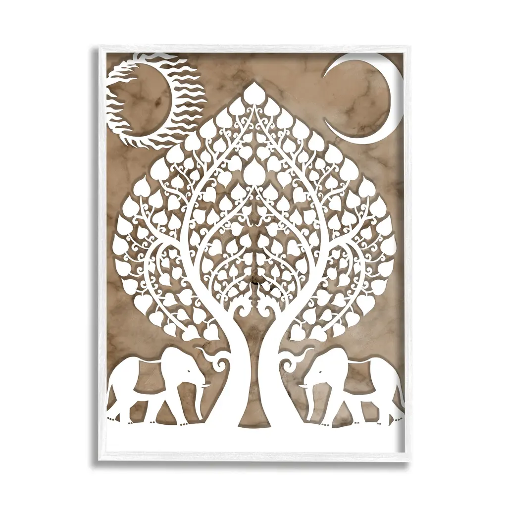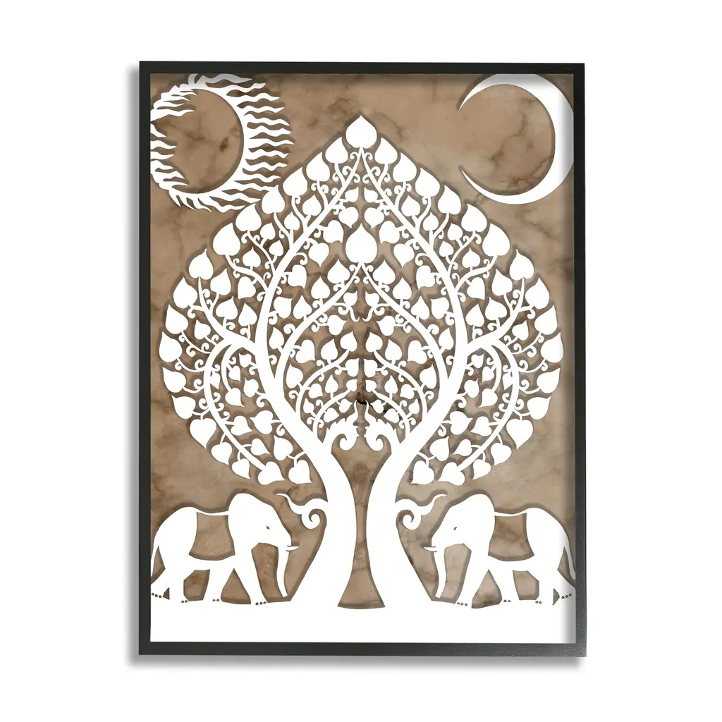 Stupell Boho Elephants Tree Of Life Abstract Sun Moon Framed Wall Art - White - 24 X 30 - Grey