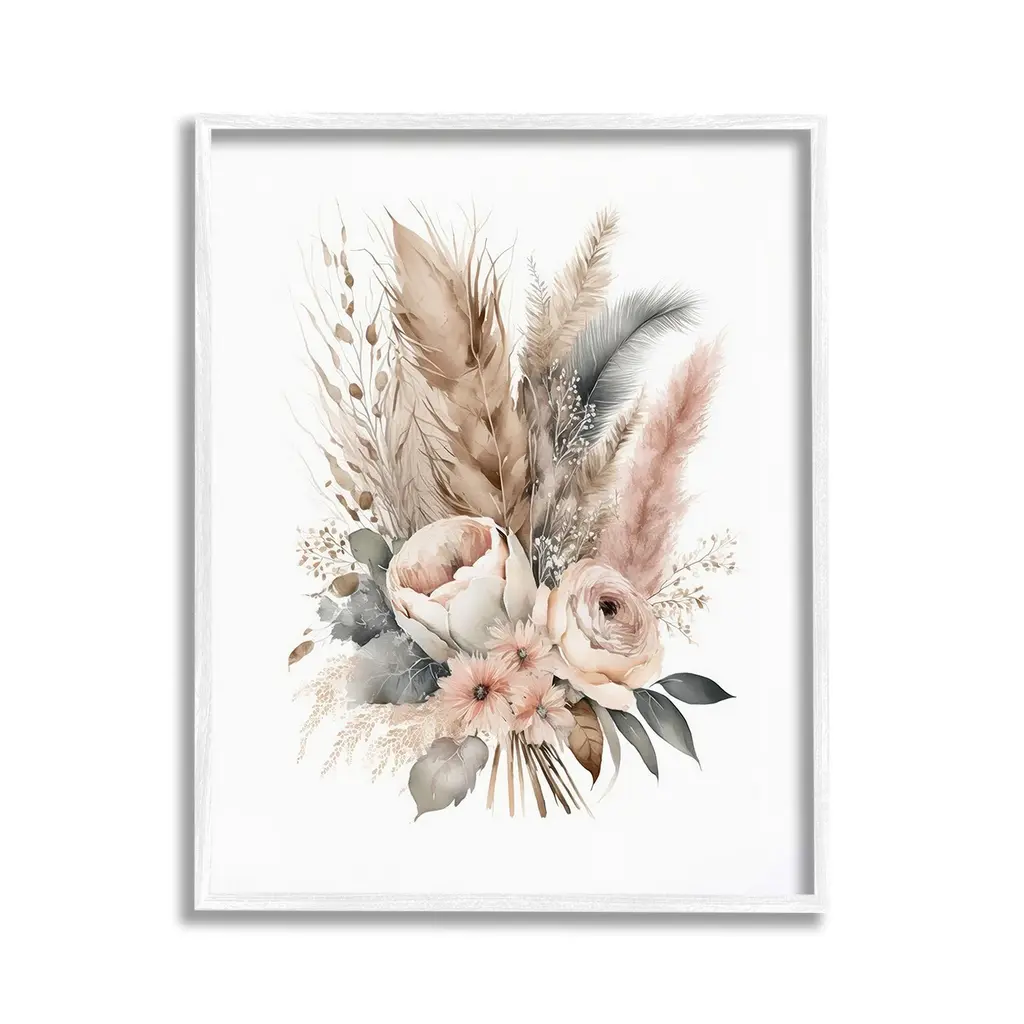 Add dimension to any room with our textured Framed Giclee Artwork. Our framed artwork is securely mounted into a 1.5-inch thick wood grain frame and ready to hang. Frames are available in three alluring styles: black, gray farmhouse and white. In addition, you should check out our oversized options if you want a statement piece. Stupell Wall Art is made in the USA.Features: Dimensions: 11 x 1.5 x 14 FramedFramed Giclee Products are available in the sizes 11"x14", 16"x20" or 24"x30". All Framed Giclee Products have a 1.5" Depth. Wall Art is Ready to Hang with Hardware Free Hanging. No installation required. For Easy Set Up Lean or Layer Artwork on Shelf or Against Wall.Our giclée prints are carefully mounted on a durable MDF backing, and then perfectly finished in a 1.5 inch thick woodgrain frame. Mounted frame colors include black, gray farmhouse and white. Made In USA.Artwork Relates To: Flower, Floral, Botanical, Plant, Leaf, Minimal, Traditional, Feather, Rose, BohoDesign by LSR Design Studio