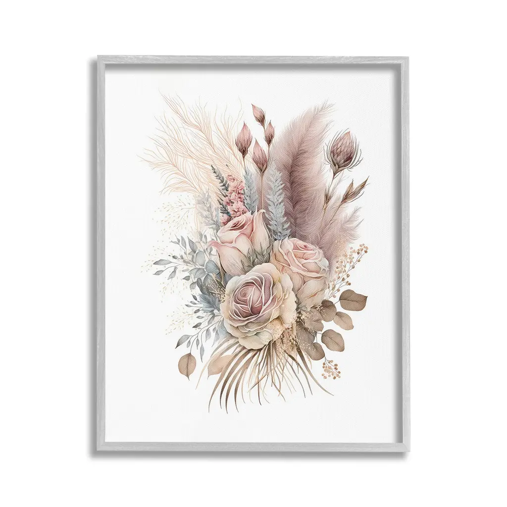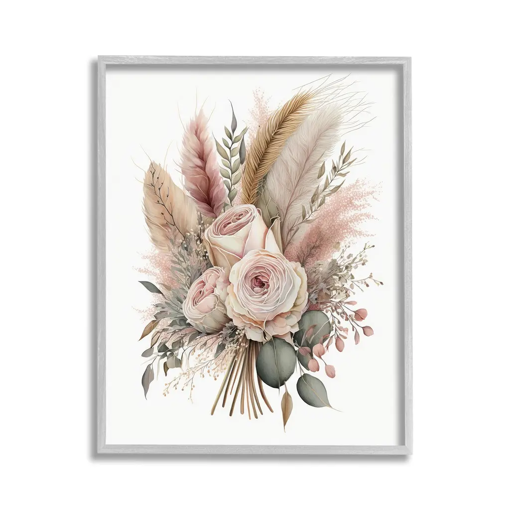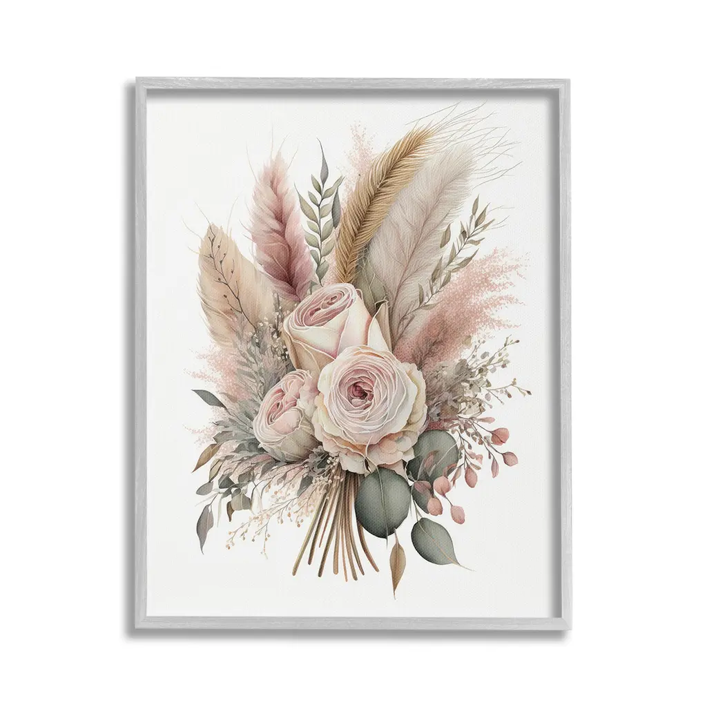Add dimension to any room with our textured Framed Giclee Artwork. Our framed artwork is securely mounted into a 1.5-inch thick wood grain frame and ready to hang. Frames are available in three alluring styles: black, gray farmhouse and white. In addition, you should check out our oversized options if you want a statement piece. Stupell Wall Art is made in the USA.Features: Dimensions: 11 x 1.5 x 14 FramedFramed Giclee Products are available in the sizes 11"x14", 16"x20" or 24"x30". All Framed Giclee Products have a 1.5" Depth. Wall Art is Ready to Hang with Hardware Free Hanging. No installation required. For Easy Set Up Lean or Layer Artwork on Shelf or Against Wall.Our giclée prints are carefully mounted on a durable MDF backing, and then perfectly finished in a 1.5 inch thick woodgrain frame. Mounted frame colors include black, gray farmhouse and white. Made In USA.Artwork Relates To: Flower, Floral, Botanical, Plant, Leaf, Minimal, Traditional, Feather, Rose, BohoDesign by LSR Design Studio