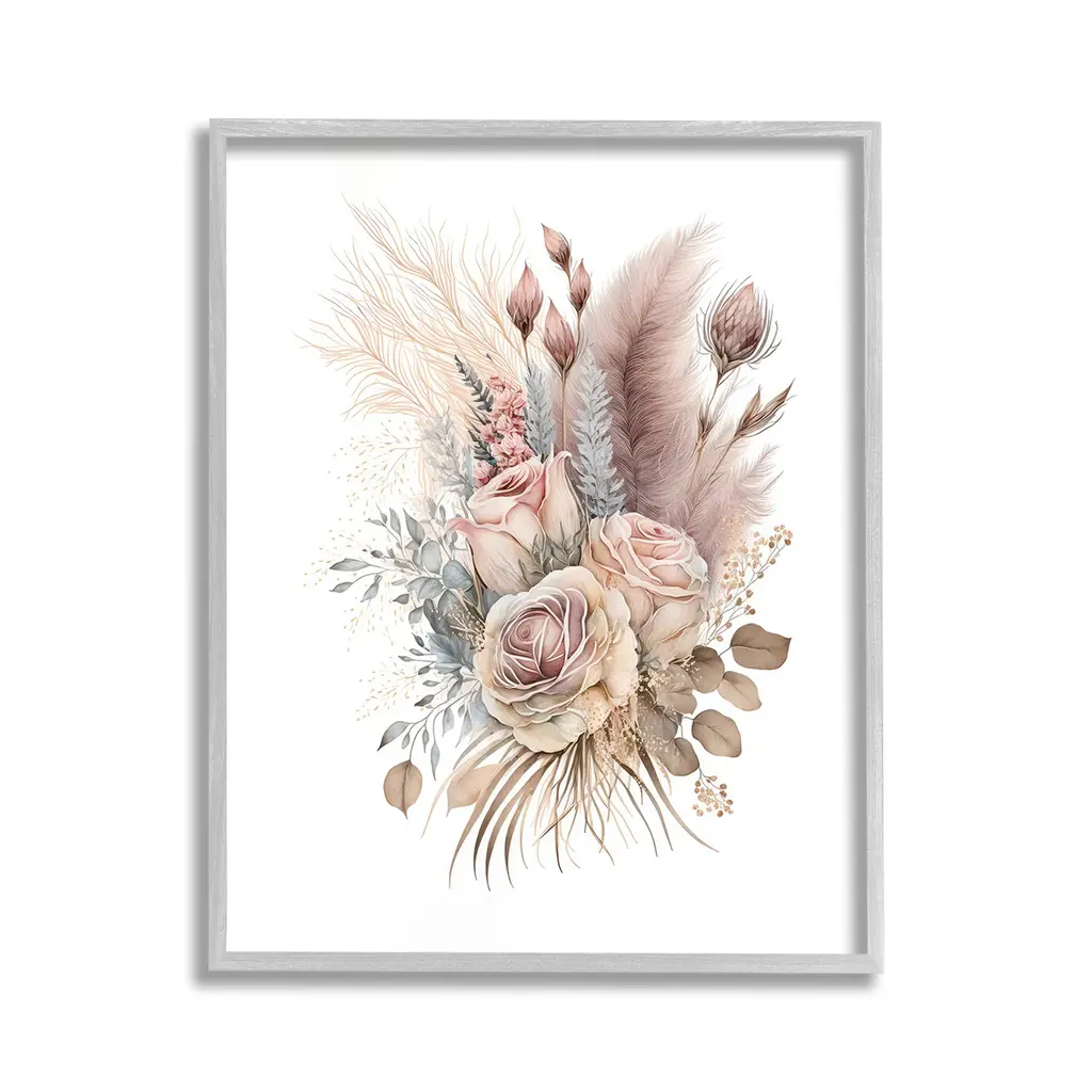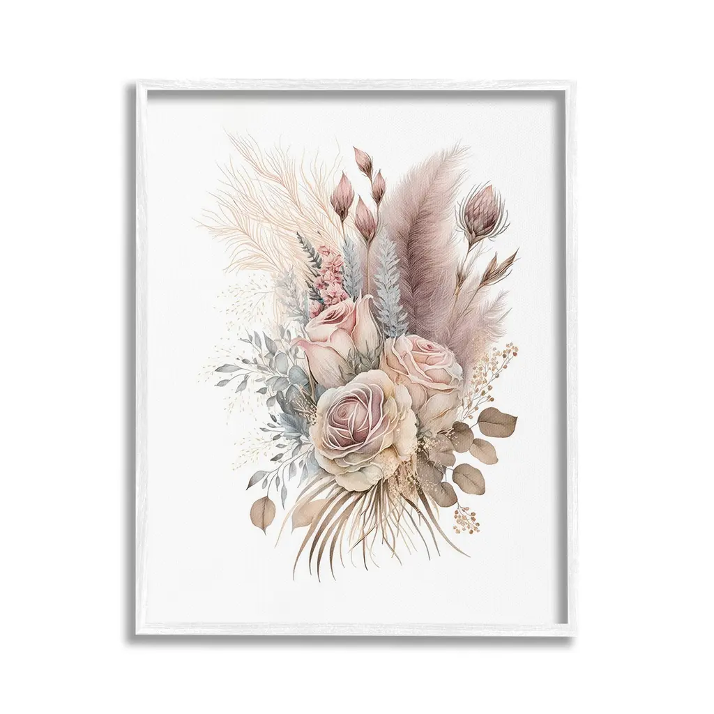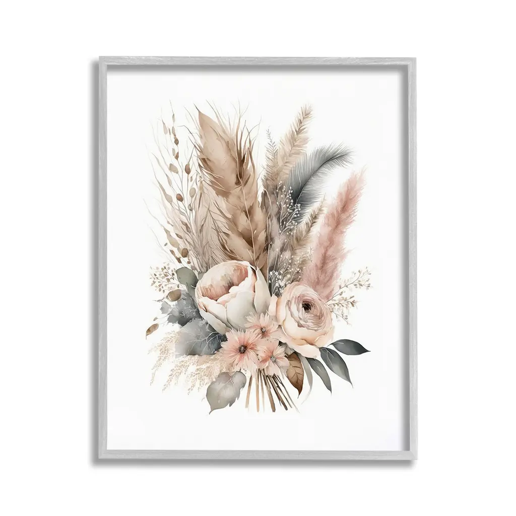 Add dimension to any room with our textured Framed Giclee Artwork. Our framed artwork is securely mounted into a 1.5-inch thick wood grain frame and ready to hang. Frames are available in three alluring styles: black, gray farmhouse and white. In addition, you should check out our oversized options if you want a statement piece. Stupell Wall Art is made in the USA.Features: Dimensions: 11 x 1.5 x 14 FramedFramed Giclee Products are available in the sizes 11"x14", 16"x20" or 24"x30". All Framed Giclee Products have a 1.5" Depth. Wall Art is Ready to Hang with Hardware Free Hanging. No installation required. For Easy Set Up Lean or Layer Artwork on Shelf or Against Wall.Our giclée prints are carefully mounted on a durable MDF backing, and then perfectly finished in a 1.5 inch thick woodgrain frame. Mounted frame colors include black, gray farmhouse and white. Made In USA.Artwork Relates To: Flower, Floral, Botanical, Plant, Leaf, Minimal, Traditional, Feather, Rose, BohoDesign by LSR Design Studio