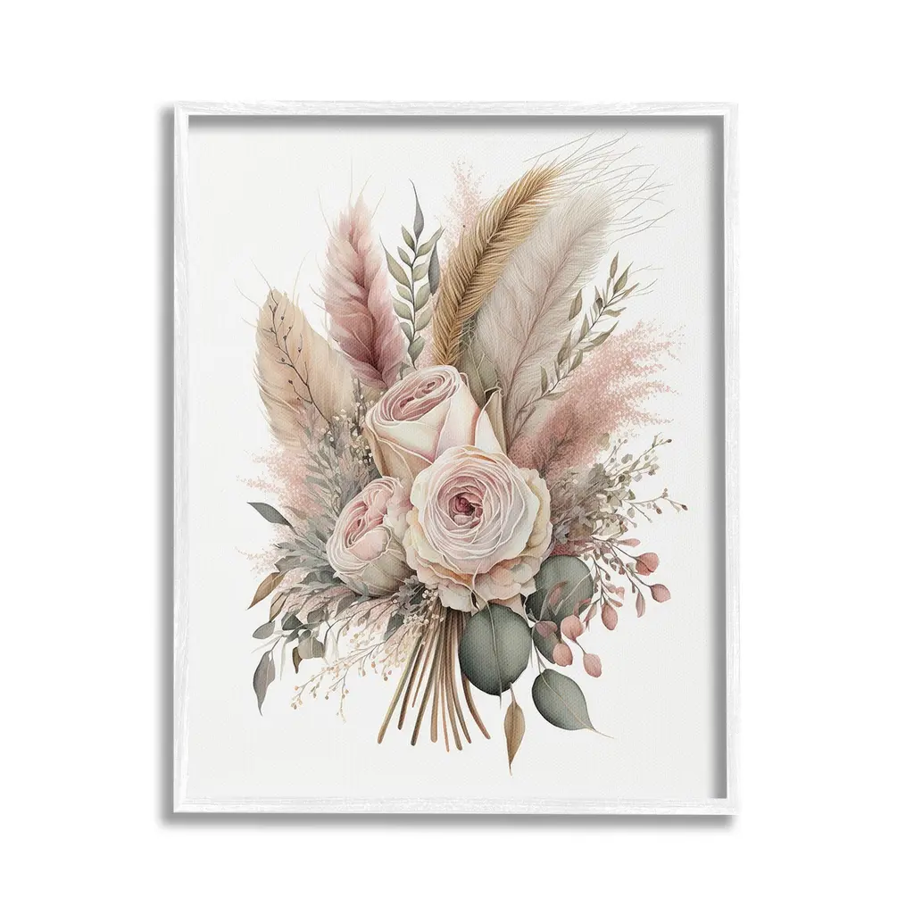 Add dimension to any room with our textured Framed Giclee Artwork. Our framed artwork is securely mounted into a 1.5-inch thick wood grain frame and ready to hang. Frames are available in three alluring styles: black, gray farmhouse and white. In addition, you should check out our oversized options if you want a statement piece. Stupell Wall Art is made in the USA.Features: Dimensions: 11 x 1.5 x 14 FramedFramed Giclee Products are available in the sizes 11"x14", 16"x20" or 24"x30". All Framed Giclee Products have a 1.5" Depth. Wall Art is Ready to Hang with Hardware Free Hanging. No installation required. For Easy Set Up Lean or Layer Artwork on Shelf or Against Wall.Our giclée prints are carefully mounted on a durable MDF backing, and then perfectly finished in a 1.5 inch thick woodgrain frame. Mounted frame colors include black, gray farmhouse and white. Made In USA.Artwork Relates To: Flower, Floral, Botanical, Plant, Leaf, Minimal, Traditional, Feather, Rose, BohoDesign by LSR Design Studio