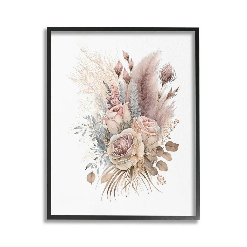 Add dimension to any room with our textured Framed Giclee Artwork. Our framed artwork is securely mounted into a 1.5-inch thick wood grain frame and ready to hang. Frames are available in three alluring styles: black, gray farmhouse and white. In addition, you should check out our oversized options if you want a statement piece. Stupell Wall Art is made in the USA.Features: Dimensions: 11 x 1.5 x 14 FramedFramed Giclee Products are available in the sizes 11"x14", 16"x20" or 24"x30". All Framed Giclee Products have a 1.5" Depth. Wall Art is Ready to Hang with Hardware Free Hanging. No installation required. For Easy Set Up Lean or Layer Artwork on Shelf or Against Wall.Our giclée prints are carefully mounted on a durable MDF backing, and then perfectly finished in a 1.5 inch thick woodgrain frame. Mounted frame colors include black, gray farmhouse and white. Made In USA.Artwork Relates To: Flower, Floral, Botanical, Plant, Leaf, Minimal, Traditional, Feather, Rose, BohoDesign by LSR Design Studio