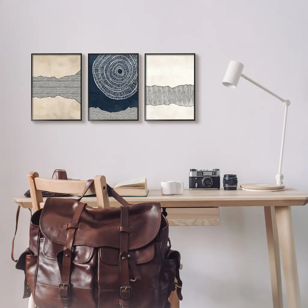 Fill any space in your home or office with our Framed Wall Art Sets. Our framed artwork is securely mounted into a 1.5-inch thick wood grain frame and ready to hang. Frames are available in three alluring styles: black, gray farmhouse and white. Stupell Wall Art is made in the USA.Features: Dimensions: 3 Piece Set, Each Panel is 11 x 1.5 x 14 FramedFramed Giclee Set Sizes Include Standard: 3pc, Each is 11 x 1.5 x 14 Large: 3pc, Each is 16 x 1.5 x 20 Oversized: 3pc, Each is 24 x 1.5 x 30Wall Art is Ready to Hang with Hardware Free Hanging. No installation required. For Easy Set Up Lean or Layer Artwork on Shelf or Against Wall.Curated Wall Art Sets make it easy for you complete the theme for any room. Our giclée prints are carefully mounted on a durable MDF backing, and then perfectly finished in a 1.5 inch thick woodgrain frame. Mounted frame colors include black, gray farmhouse and white. Made In USA.Artwork Relates To: Painting, Abstract, Landscape, ModernDesign by Ros Ruseva