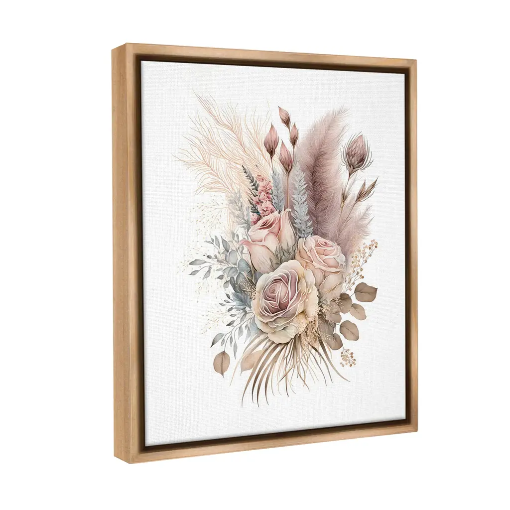 Stupell Boho Neutral Roses Framed Floater Canvas Wall Art Design By Lsr Design Studio - 17 X 21 - Brown