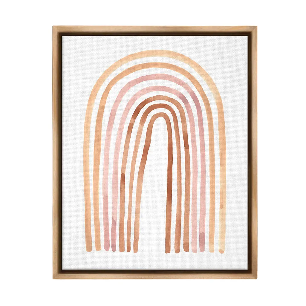 Elevate your home or office to the next level with Stupell Framed Floating Canvas Wall Art. Our premium hand-stretched canvas is mounted securely into a sturdy lightweight frame. The museum-style gap between the wrapped canvas and the box frame gives the illusion of floating artwork. Stupell Wall Art is made in the USA.Features: Dimensions: 17 x 1.7 x 21 Frame, 16 x 1.5 x 20 Canvas ArtFloating Frame Canvas Products are available in sizes 17"x21" and 25"x31". All Floating Frame Canvas Products have a 1.7" Depth.Wall Art is Ready to Hang with Hardware Free Hanging. No Installation required. For Easy Set Up Lean or Layer Artwork on Shelf or Against Wall. Artwork is Permently Fixed into the Frame.Our elevated 1.7" Thick Floating Frame is the perfect complement to our canvas style Wall Art. We use only the highest quality inks in house with industry leading printing solutions. Canvas is hand stretched over a durable wood foundation and then mounted securly into a Modern Box Frame. Made in the USA.Artwork Relates To: Abstract, Modern, Boho, Arch, Shape, Geometric, RainbowDesign by Lisa Nohren