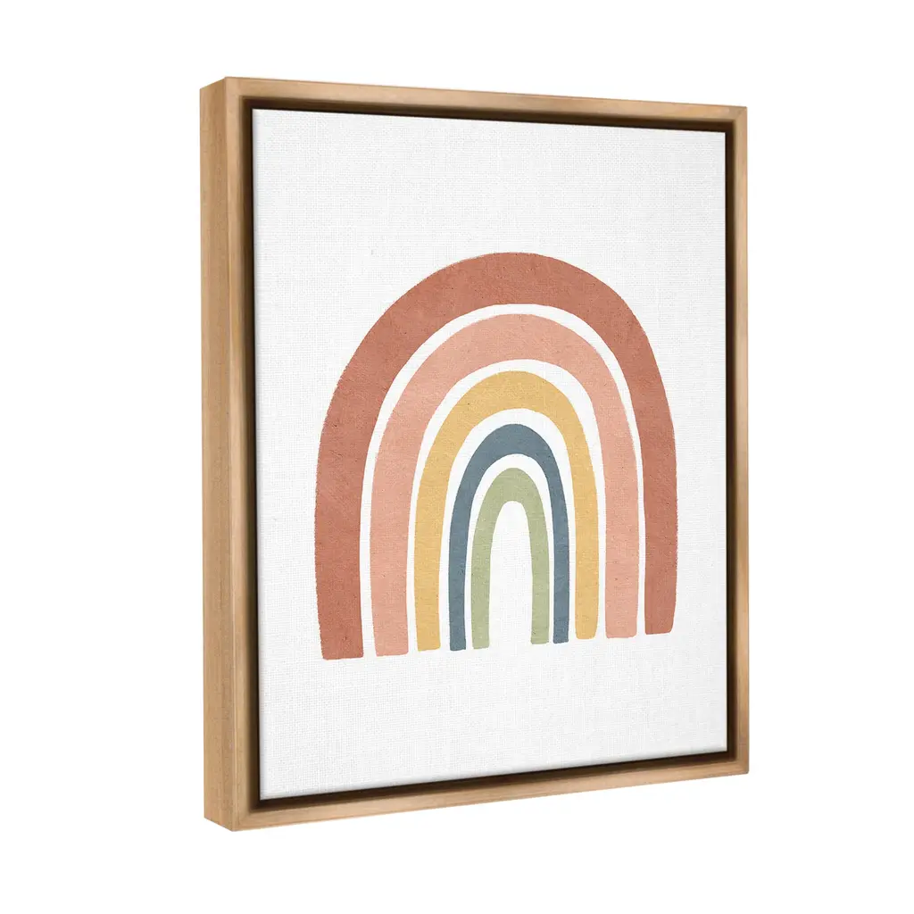 Elevate your home or office to the next level with Stupell Framed Floating Canvas Wall Art. Our premium hand-stretched canvas is mounted securely into a sturdy lightweight frame. The museum-style gap between the wrapped canvas and the box frame gives the illusion of floating artwork. Stupell Wall Art is made in the USA.Features: Dimensions: 17 x 1.7 x 21 Frame, 16 x 1.5 x 20 Canvas ArtFloating Frame Canvas Products are available in sizes 17"x21" and 25"x31". All Floating Frame Canvas Products have a 1.7" Depth.Wall Art is Ready to Hang with Hardware Free Hanging. No Installation required. For Easy Set Up Lean or Layer Artwork on Shelf or Against Wall. Artwork is Permently Fixed into the Frame.Our elevated 1.7" Thick Floating Frame is the perfect complement to our canvas style Wall Art. We use only the highest quality inks in house with industry leading printing solutions. Canvas is hand stretched over a durable wood foundation and then mounted securly into a Modern Box Frame. Made in the USA.Artwork Relates To: Abstract, Modern, Boho, Arch, Shape, Geometric, RainbowDesign by Lisa Nohren
