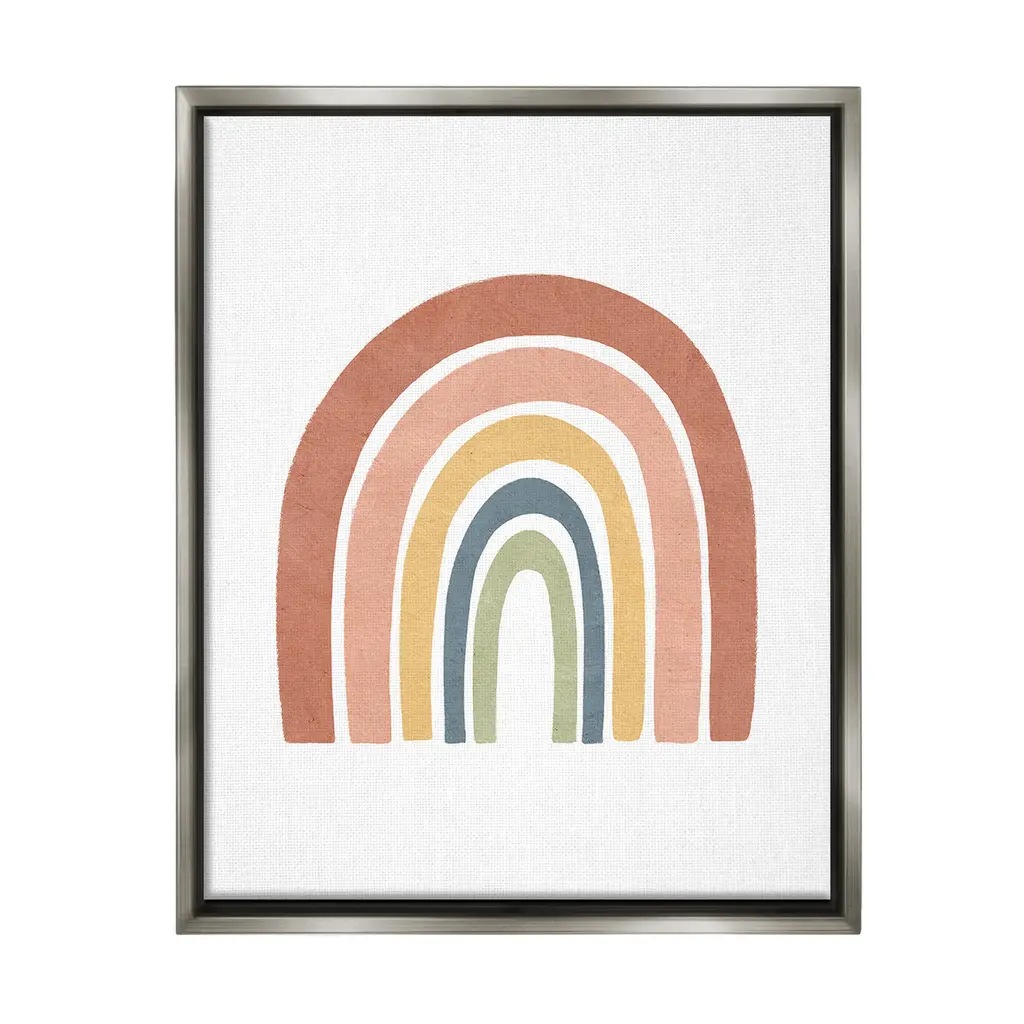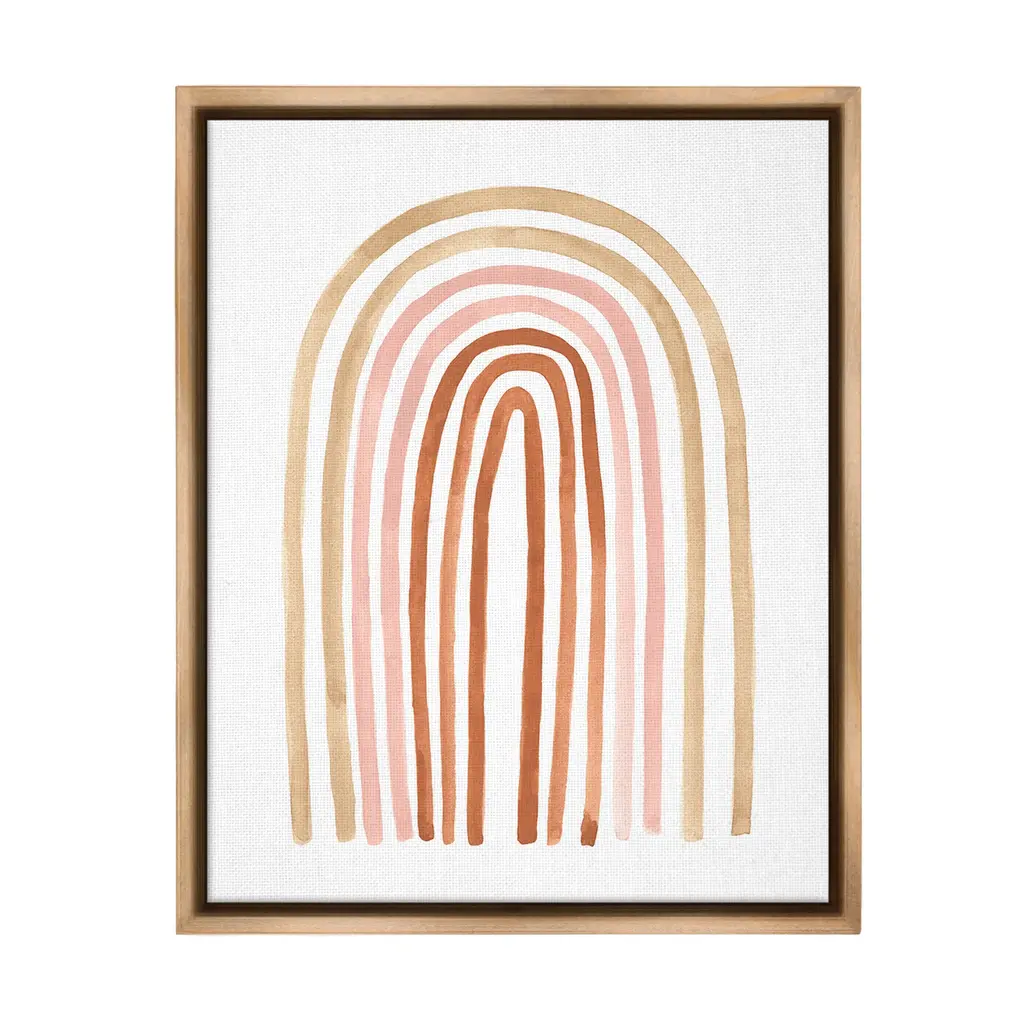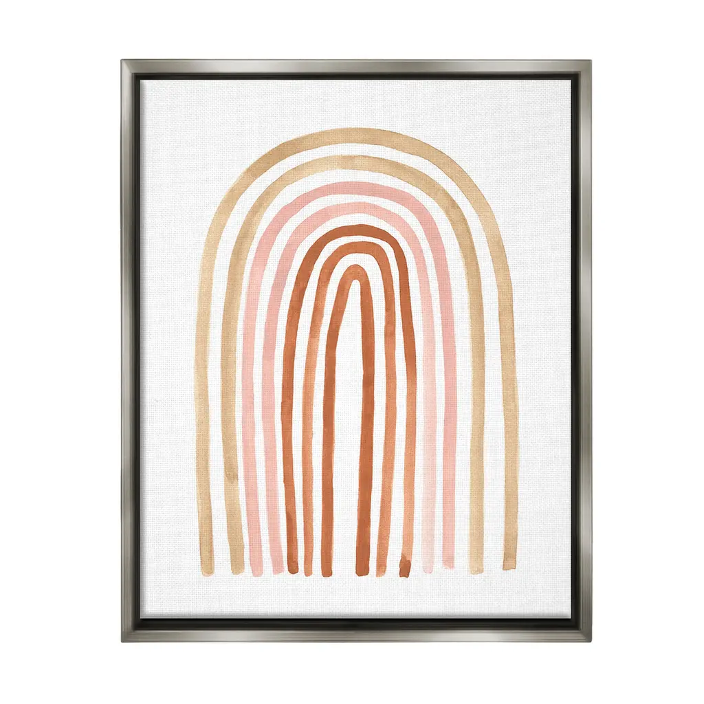Elevate your home or office to the next level with Stupell Framed Floating Canvas Wall Art. Our premium hand-stretched canvas is mounted securely into a sturdy lightweight frame. The museum-style gap between the wrapped canvas and the box frame gives the illusion of floating artwork. Stupell Wall Art is made in the USA.Features: Dimensions: 17 x 1.7 x 21 Frame, 16 x 1.5 x 20 Canvas ArtFloating Frame Canvas Products are available in sizes 17"x21" and 25"x31". All Floating Frame Canvas Products have a 1.7" Depth.Wall Art is Ready to Hang with Hardware Free Hanging. No Installation required. For Easy Set Up Lean or Layer Artwork on Shelf or Against Wall. Artwork is Permently Fixed into the Frame.Our elevated 1.7" Thick Floating Frame is the perfect complement to our canvas style Wall Art. We use only the highest quality inks in house with industry leading printing solutions. Canvas is hand stretched over a durable wood foundation and then mounted securly into a Modern Box Frame. Made in the USA.Artwork Relates To: Abstract, Modern, Boho, Arch, Shape, Geometric, RainbowDesign by Lisa Nohren
