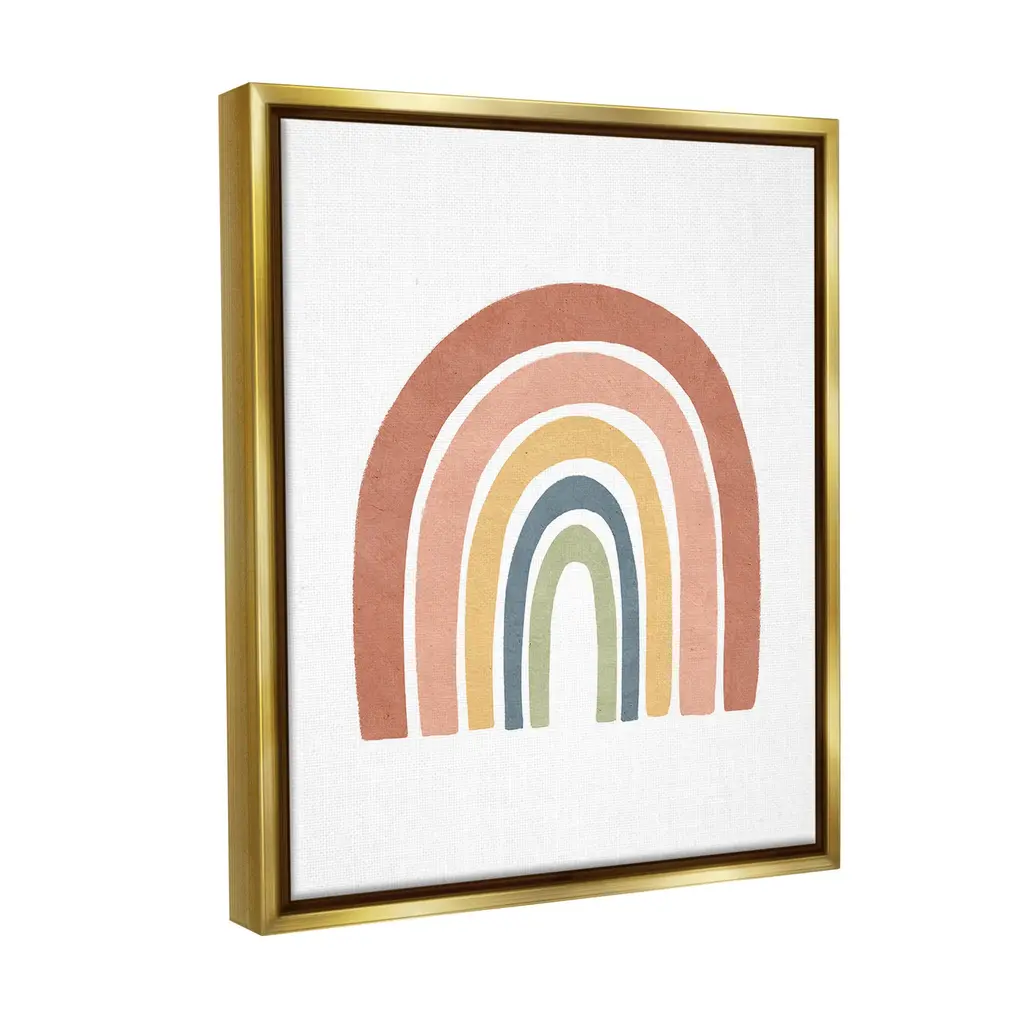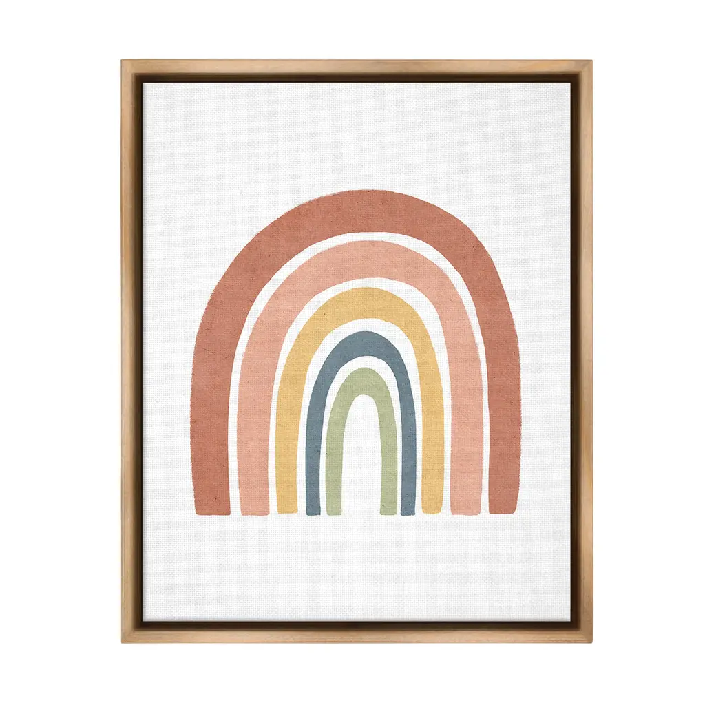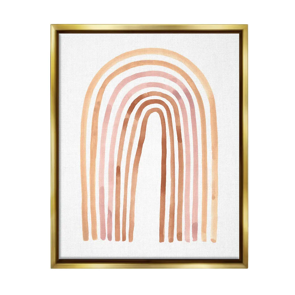 Elevate your home or office to the next level with Stupell Framed Floating Canvas Wall Art. Our premium hand-stretched canvas is mounted securely into a sturdy lightweight frame. The museum-style gap between the wrapped canvas and the box frame gives the illusion of floating artwork. Stupell Wall Art is made in the USA.Features: Dimensions: 17 x 1.7 x 21 Frame, 16 x 1.5 x 20 Canvas ArtFloating Frame Canvas Products are available in sizes 17"x21" and 25"x31". All Floating Frame Canvas Products have a 1.7" Depth.Wall Art is Ready to Hang with Hardware Free Hanging. No Installation required. For Easy Set Up Lean or Layer Artwork on Shelf or Against Wall. Artwork is Permently Fixed into the Frame.Our elevated 1.7" Thick Floating Frame is the perfect complement to our canvas style Wall Art. We use only the highest quality inks in house with industry leading printing solutions. Canvas is hand stretched over a durable wood foundation and then mounted securly into a Modern Box Frame. Made in the USA.Artwork Relates To: Abstract, Modern, Boho, Arch, Shape, Geometric, RainbowDesign by Lisa Nohren