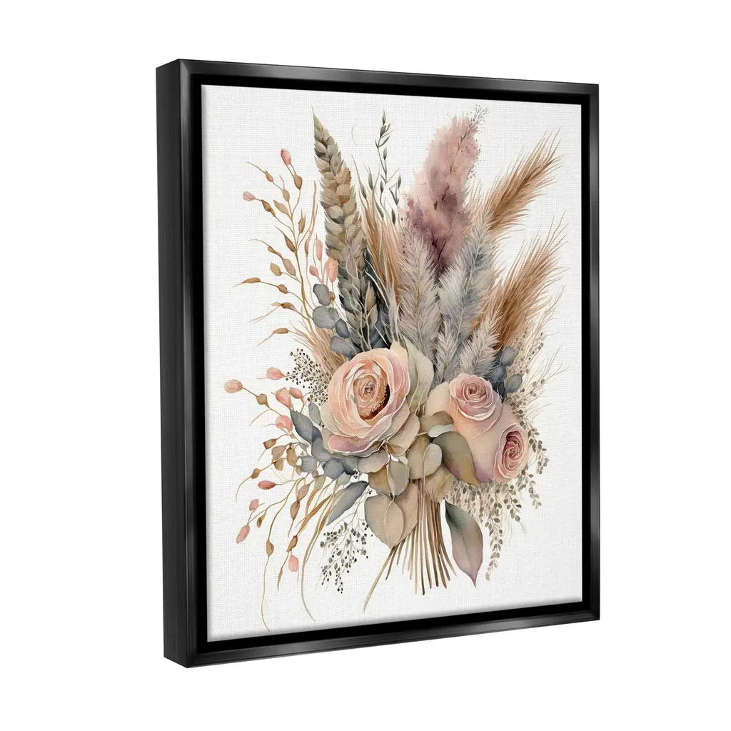 Stupell Boho Rose Pampas Framed Floater Canvas Wall Art Design By Lsr Design Studio - 25 X 31 - Black