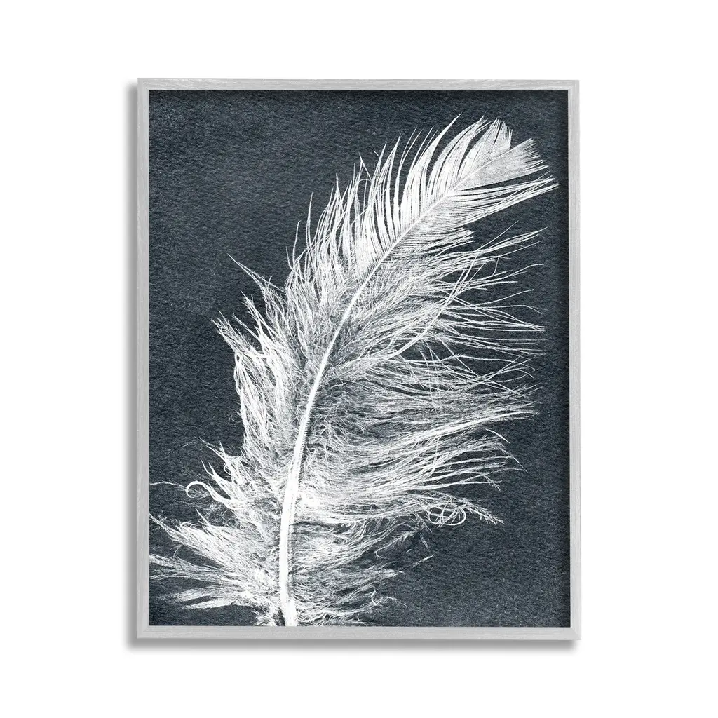 Stupell Boho Windswept Feather Framed Giclee Art Design By Pernille Folcarelli - 11 X 14 - Grey