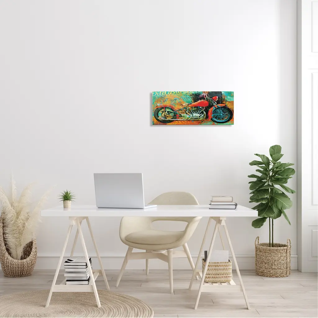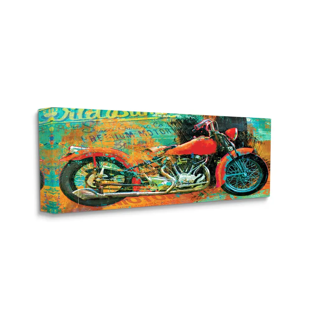 Stupell Bold Abstract Collaged Red Motorcycle Text Brushstrokes Canvas Wall Art - 10 X 24