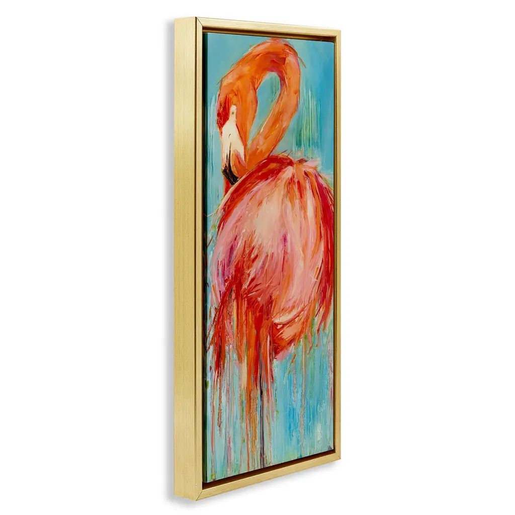 Elevate your home or office to the next level with Stupell Framed Floating Canvas Wall Art. Our premium hand-stretched canvas is mounted securely into a sturdy lightweight frame. The museum-style gap between the wrapped canvas and the box frame gives the illusion of floating artwork. Stupell Wall Art is made in the USA.Features: Dimensions: 11 x 1.7 x 25 Frame, 10 x 1.5 x 24 Canvas ArtFloating Frame Canvas Products are available in sizes 11"x25" and 14"x31". All Floating Frame Canvas Products have a 1.7" Depth.Wall Art is Ready to Hang with Hardware Free Hanging. No Installation required. For Easy Set Up Lean or Layer Artwork on Shelf or Against Wall. Artwork is Permently Fixed into the Frame.Our elevated 1.7" Thick Floating Frame is the perfect complement to our canvas style Wall Art. We use only the highest quality inks in house with industry leading printing solutions. Canvas is hand stretched over a durable wood foundation and then mounted securly into a Modern Box Frame. Made in the USA.Artwork Relates To: Animal, Bird, Flamingo, Beak, Modern, Painting, Abstract Design by Kathleen Broaderick