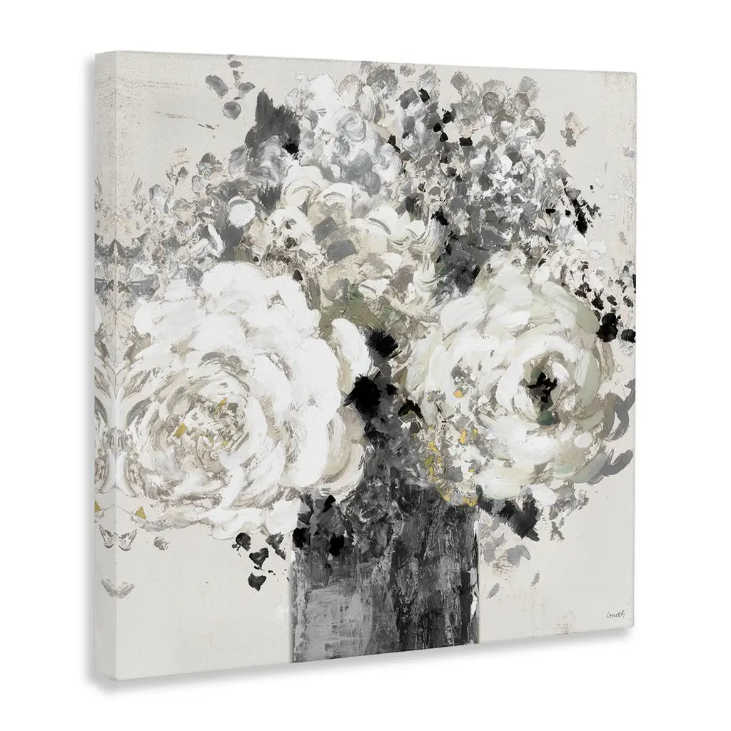 Stupell Bold Abstract Floral Arrangement Black Cream Expressive Flowers Canvas Wall Art - Grey - 36 X 36