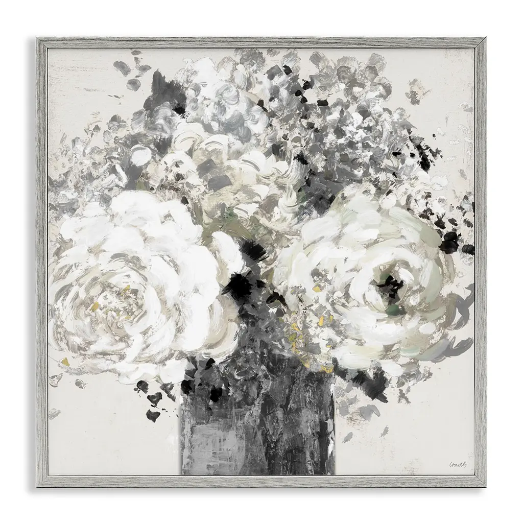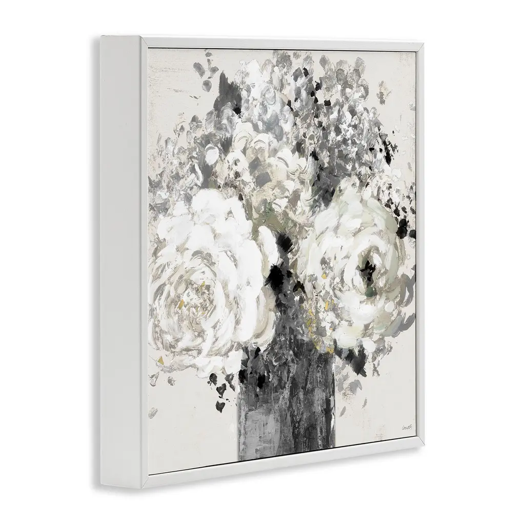 Stupell Bold Abstract Floral Arrangement Black Cream Expressive Flowers Framed Wall Art - 17 X 17 - White