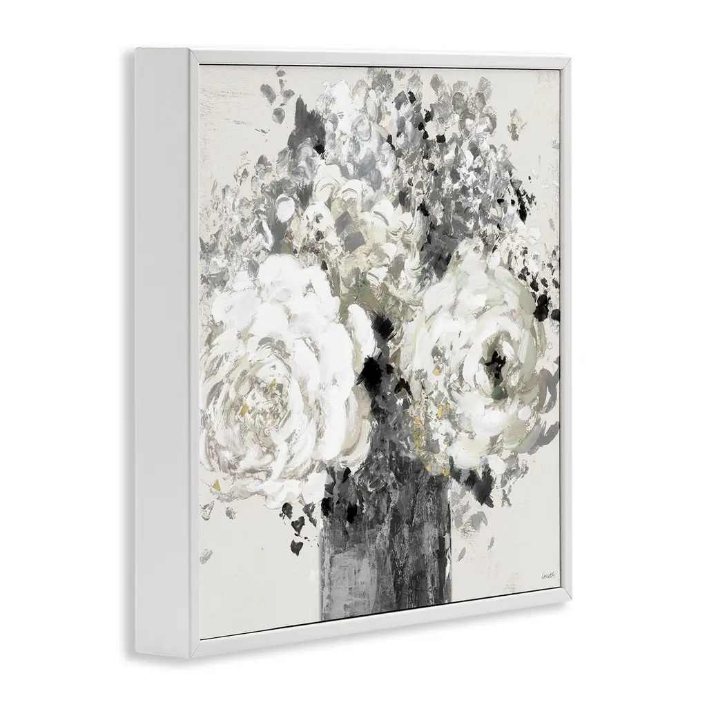 Stupell Bold Abstract Floral Arrangement Black Cream Expressive Flowers Framed Wall Art - 24 X 24 - White