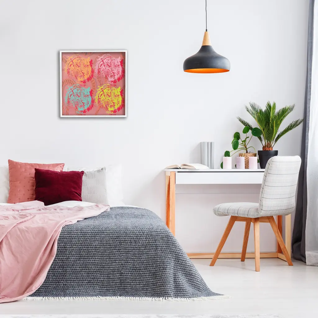 Add dimension to any room with our textured Framed Giclee Artwork. Our framed artwork is securely mounted into a 1.5-inch thick wood grain frame and ready to hang. Frames are available in three alluring styles: black, gray farmhouse and white. In addition, you should check out our oversized options if you want a statement piece. Stupell Wall Art is made in the USA.Features: Dimensions: 12 x 1.5 x 12 FramedFramed Giclee Product Sizes Include 12"x12", 17"x17", and 24"x24". Framed Giclee Products have a 1.5" Depth. Wall Art is Ready to Hang with Hardware Free Hanging. No installation required. For Easy Set Up Lean or Layer Artwork on Shelf or Against Wall.Our giclée prints are carefully mounted on a durable MDF backing, and then perfectly finished in a 1.5 inch thick woodgrain frame. Mounted frame colors include black, gray farmhouse and white. Made In USA.Artwork Relates To: Purple, Animal, Mammal, Tiger, Wildlife, Abstract, Modern, Pop StyleDesign by Lil' Rue
