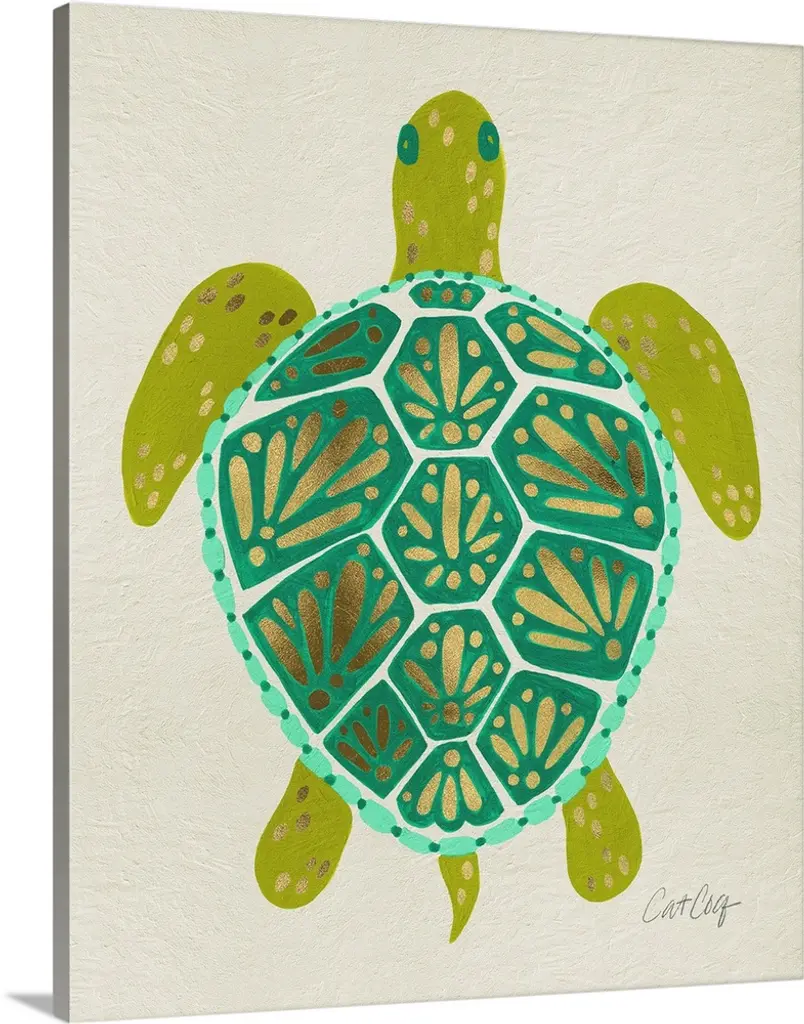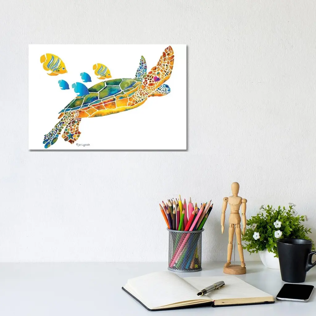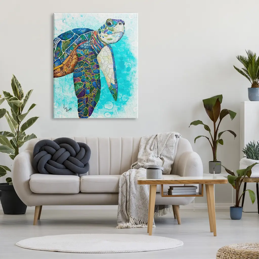 Proudly made in the USA, Our stretched canvas is created with the highest standards. We use only the highest quality inks and canvas on our in house Mimaki printers, and then hand cut and stretch each piece over a 1.5 inch thick wooden frame for hanging. The art comes ready to hang with no installation required. Not to mention, at this size, it is sure to be the focal point of any room!Features: Wall Art is Ready to Hang - No Installation or Hardware Needed. For Easy Set Up Lean or Layer Artwork on Shelf or Against Wall.Our stretched canvas is created with the highest standards. We use only the highest quality inks and canvas on our in house Mimaki printers, and then hand cut and stretch each piece over a 1.5 inch thick wooden frame for hanging. Made In USA.Artwork Relates To: Sea Life; Animal; Turtle; Reptile; Sea Turtle; Lisa MoralesDesign by Lisa Morales