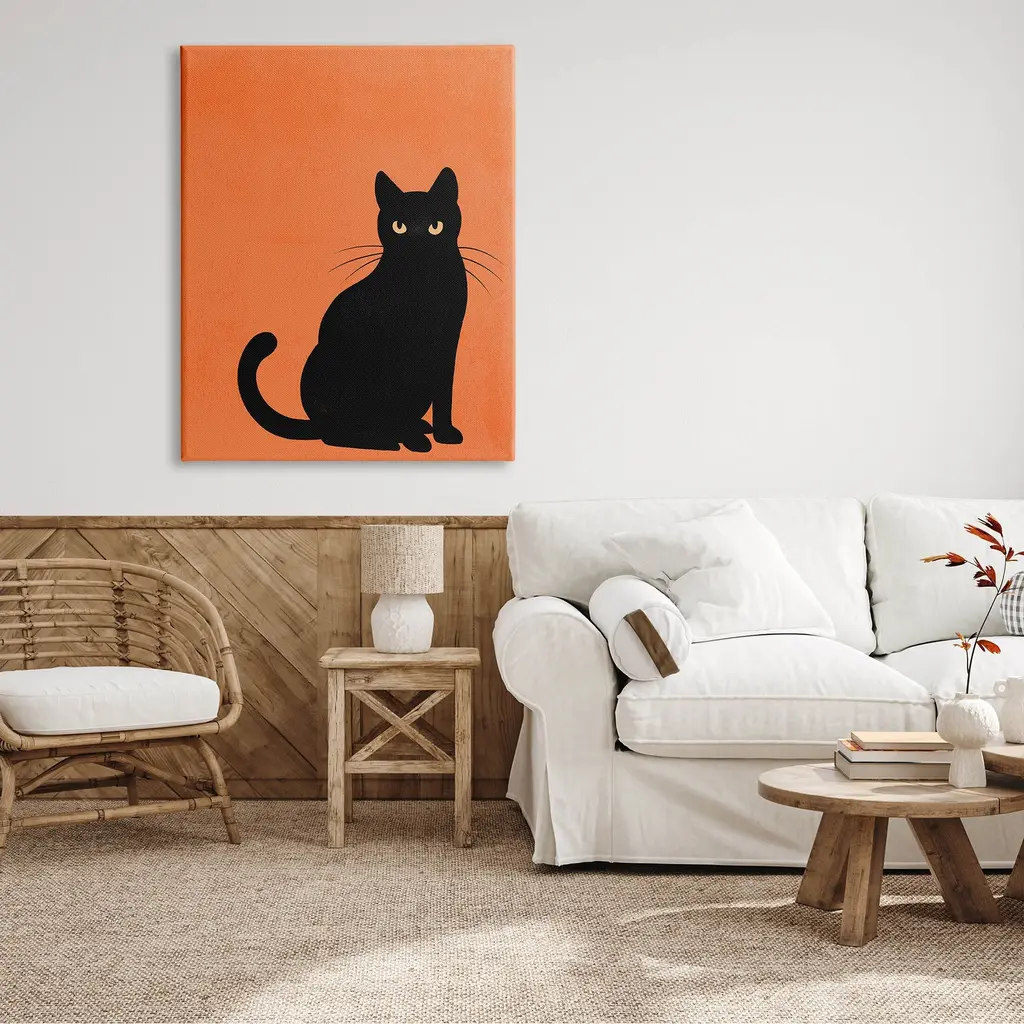 Proudly made in the USA, Our stretched canvas is created with the highest standards. We use only the highest quality inks and canvas on our in house Mimaki printers, and then hand cut and stretch each piece over a 1.5 inch thick wooden frame for hanging. The art comes ready to hang with no installation required. Not to mention, at this size, it is sure to be the focal point of any room!Features:Dimensions: 16 x 1.5 x 20 InchesStretched Canvas Sizes IncludeStandard: 16 x 1.5 x 20Large: 20 x 1.5 x 30X-Large: 30 x 1.5 x 40Oversized: 36 x 1.5 x 48Wall Art is Ready to Hang - No Installation or Hardware Needed. For Easy Set Up Lean or Layer Artwork on Shelf or Against Wall.Our stretched canvas is created with the highest standards. We use only the highest quality inks and canvas on our in house Mimaki printers, and then hand cut and stretch each piece over a 1.5 inch thick wooden frame for hanging. Made In USA.Artwork Relates To: Cat; Pet; Mammal; Animal; Black Cat; Silhouette; Orange, HalloweenDesign by Jo Taylor