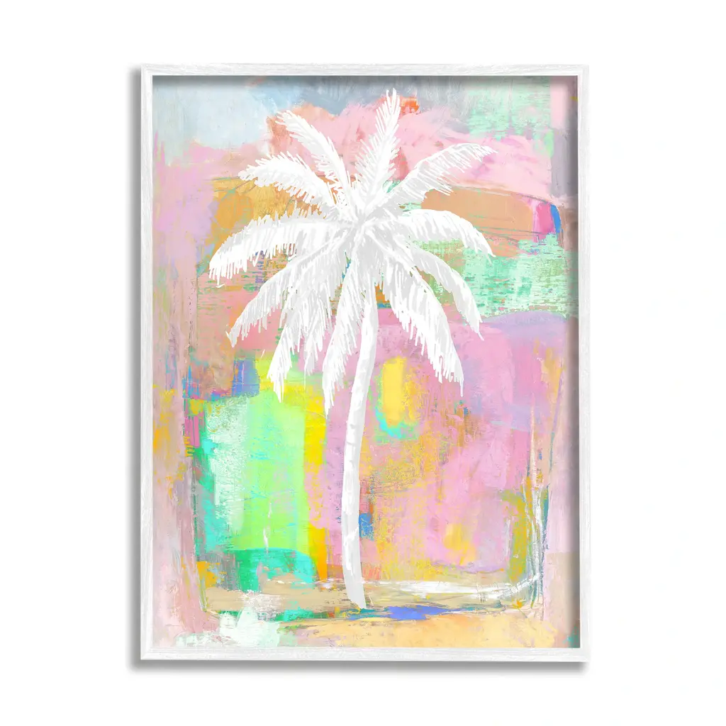 Stupell Bold Blocked Background Tropical White Palm Tree Framed Wall Art - Pink - 11 X 14 - White