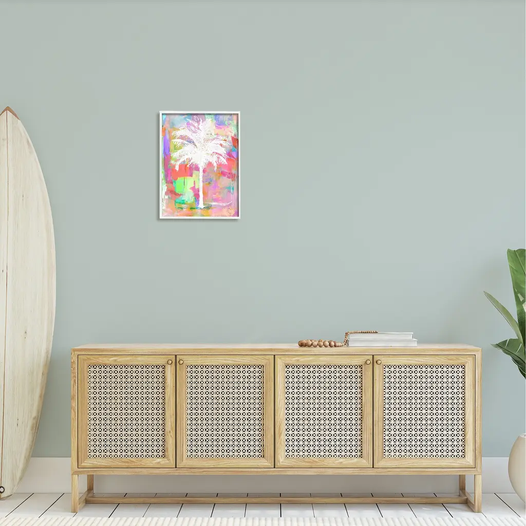 Stupell Bold Blocked Background Tropical White Palm Tree Framed Wall Art - Pink - 16 X 20 - White