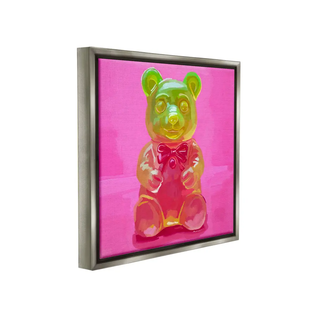 Elevate your home or office to the next level with Stupell Framed Floating Canvas Wall Art. Our premium hand-stretched canvas is mounted securely into a sturdy lightweight frame. The museum-style gap between the wrapped canvas and the box frame gives the illusion of floating artwork. Stupell Wall Art is made in the USA.Features: Dimensions: 18 x 1.7 x 18 Frame, 17 x 1.5 x 17 Canvas ArtFloating Frame Canvas Products are available in sizes 18"x18" and 25"x25". All Floating Frame Canvas Products have a 1.7" Depth.Wall Art is Ready to Hang with Hardware Free Hanging. No Installation required. For Easy Set Up Lean or Layer Artwork on Shelf or Against Wall. Artwork is Permently Fixed into the Frame.Our elevated 1.7" Thick Floating Frame is the perfect complement to our canvas style Wall Art. We use only the highest quality inks in house with industry leading printing solutions. Canvas is hand stretched over a durable wood foundation and then mounted securly into a Modern Box Frame. Made in the USA.Artwork Relates To: Food, Sweets, Candy, Bear, Abstract, Modern, BoldDesign by Amelia Noyes