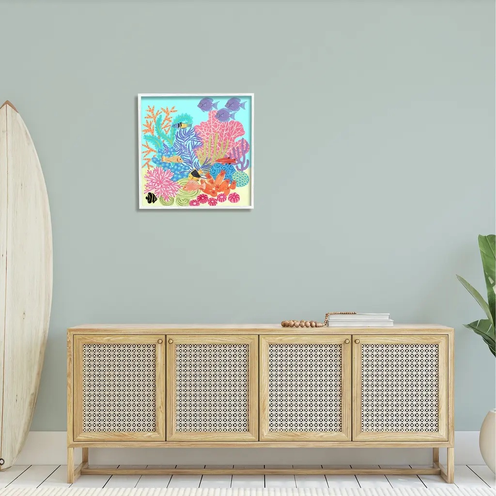 Stupell Bold Coral Reef Underwater Patterned Fish Shapes Framed Wall Art, Design By Unknown - 24 X 24 - White
