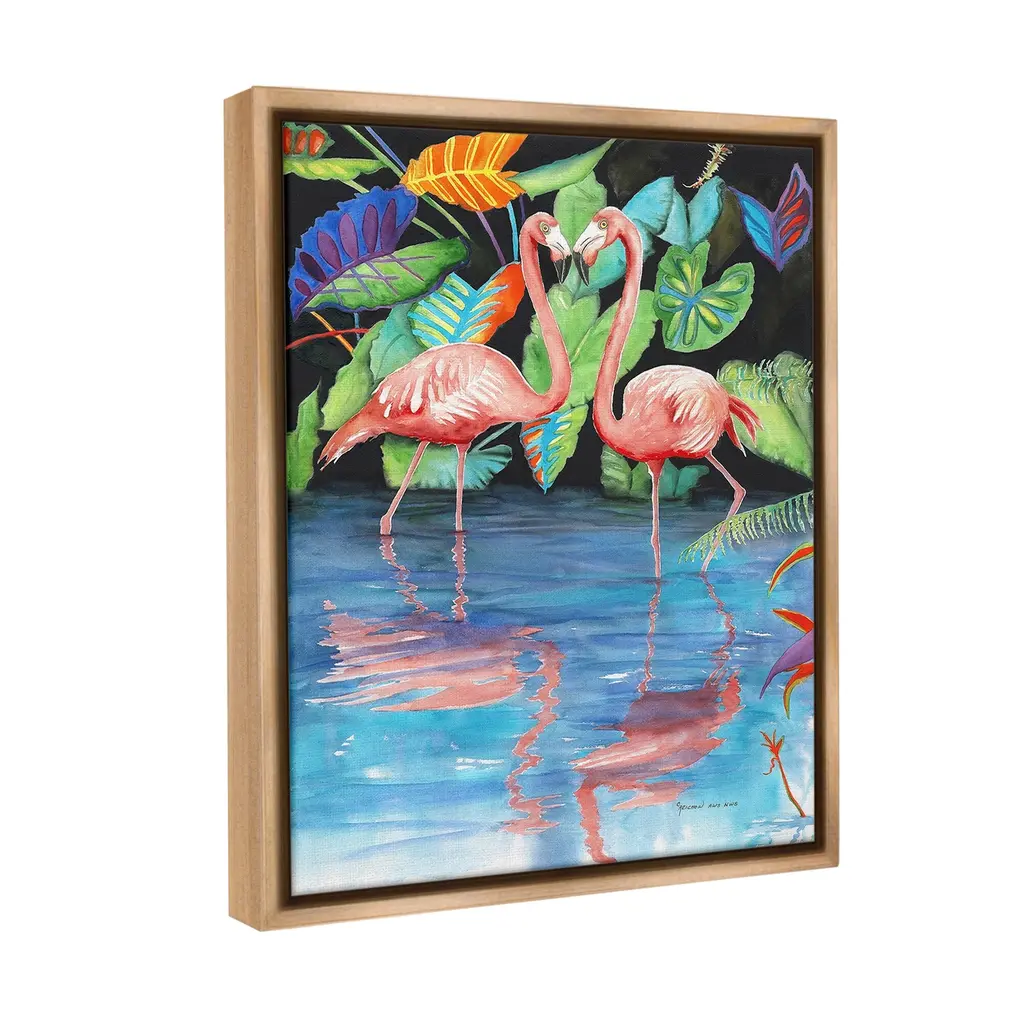Elevate your home or office to the next level with Stupell Framed Floating Canvas Wall Art. Our premium hand-stretched canvas is mounted securely into a sturdy lightweight frame. The museum-style gap between the wrapped canvas and the box frame gives the illusion of floating artwork. Stupell Wall Art is made in the USA.Features: Dimensions: 17 x 1.7 x 21 Frame, 16 x 1.5 x 20 Canvas ArtFloating Frame Canvas Products are available in sizes 17"x21" and 25"x31". All Floating Frame Canvas Products have a 1.7" Depth.Wall Art is Ready to Hang with Hardware Free Hanging. No Installation required. For Easy Set Up Lean or Layer Artwork on Shelf or Against Wall. Artwork is Permently Fixed into the Frame.Our elevated 1.7" Thick Floating Frame is the perfect complement to our canvas style Wall Art. We use only the highest quality inks in house with industry leading printing solutions. Canvas is hand stretched over a durable wood foundation and then mounted securly into a Modern Box Frame. Made in the USA.Artwork Relates To: Animal, Bird, Flamingo, Botanical, Leaf, Tropical, Water, Reflection, Ripple, PondDesign by Christine Reichow