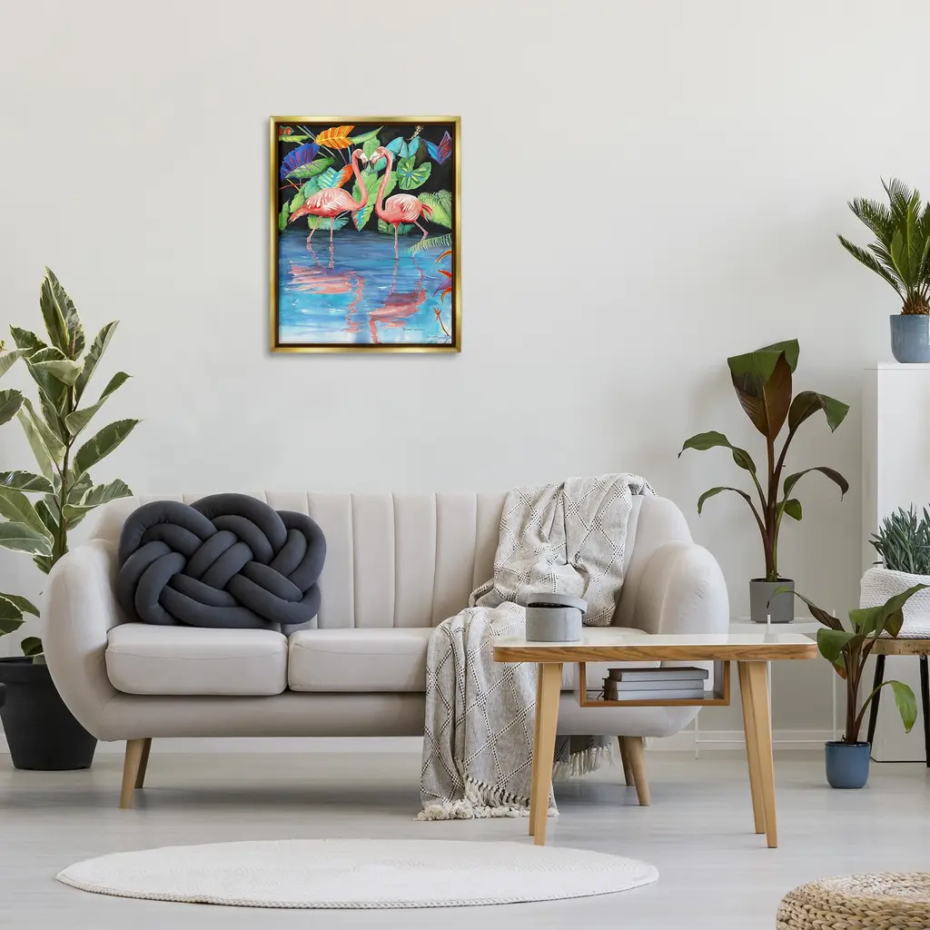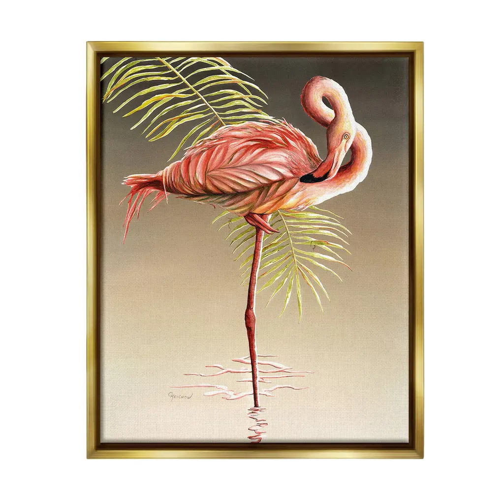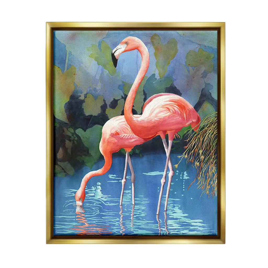 Elevate your home or office to the next level with Stupell Framed Floating Canvas Wall Art. Our premium hand-stretched canvas is mounted securely into a sturdy lightweight frame. The museum-style gap between the wrapped canvas and the box frame gives the illusion of floating artwork. Stupell Wall Art is made in the USA.Features: Dimensions: 17 x 1.7 x 21 Frame, 16 x 1.5 x 20 Canvas ArtFloating Frame Canvas Products are available in sizes 17"x21" and 25"x31". All Floating Frame Canvas Products have a 1.7" Depth.Wall Art is Ready to Hang with Hardware Free Hanging. No Installation required. For Easy Set Up Lean or Layer Artwork on Shelf or Against Wall. Artwork is Permently Fixed into the Frame.Our elevated 1.7" Thick Floating Frame is the perfect complement to our canvas style Wall Art. We use only the highest quality inks in house with industry leading printing solutions. Canvas is hand stretched over a durable wood foundation and then mounted securly into a Modern Box Frame. Made in the USA.Artwork Relates To: Animal, Bird, Flamingo, Botanical, Leaf, Tropical, Water, Reflection, Ripple, PondDesign by Christine Reichow