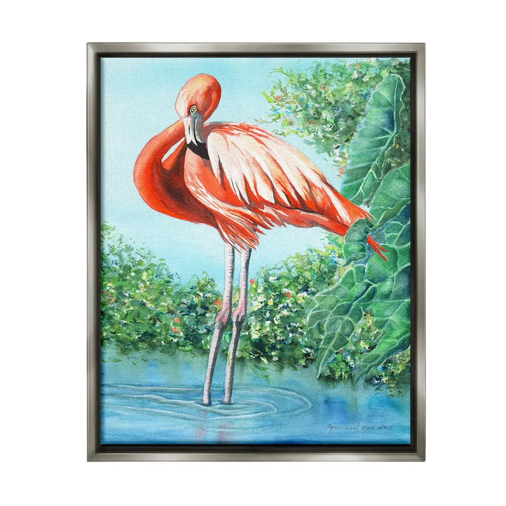 Add dimension to any room with our textured Framed Giclee Artwork. Our framed artwork is securely mounted into a 1.5-inch thick wood grain frame and ready to hang. Frames are available in three alluring styles: black, gray farmhouse and white. In addition, you should check out our oversized options if you want a statement piece. Stupell Wall Art is made in the USA.Features: Dimensions: 11 x 1.5 x 14 FramedFramed Giclee Products are available in the sizes 11"x14", 16"x20" or 24"x30". All Framed Giclee Products have a 1.5" Depth. Wall Art is Ready to Hang with Hardware Free Hanging. No installation required. For Easy Set Up Lean or Layer Artwork on Shelf or Against Wall.Our giclée prints are carefully mounted on a durable MDF backing, and then perfectly finished in a 1.5 inch thick woodgrain frame. Mounted frame colors include black, gray farmhouse and white. Made In USA.Artwork Relates To: Animal, Bird, Flamingo, Botanical, Leaf, Tropical, Water, Reflection, Ripple, PondDesign by Christine Reichow