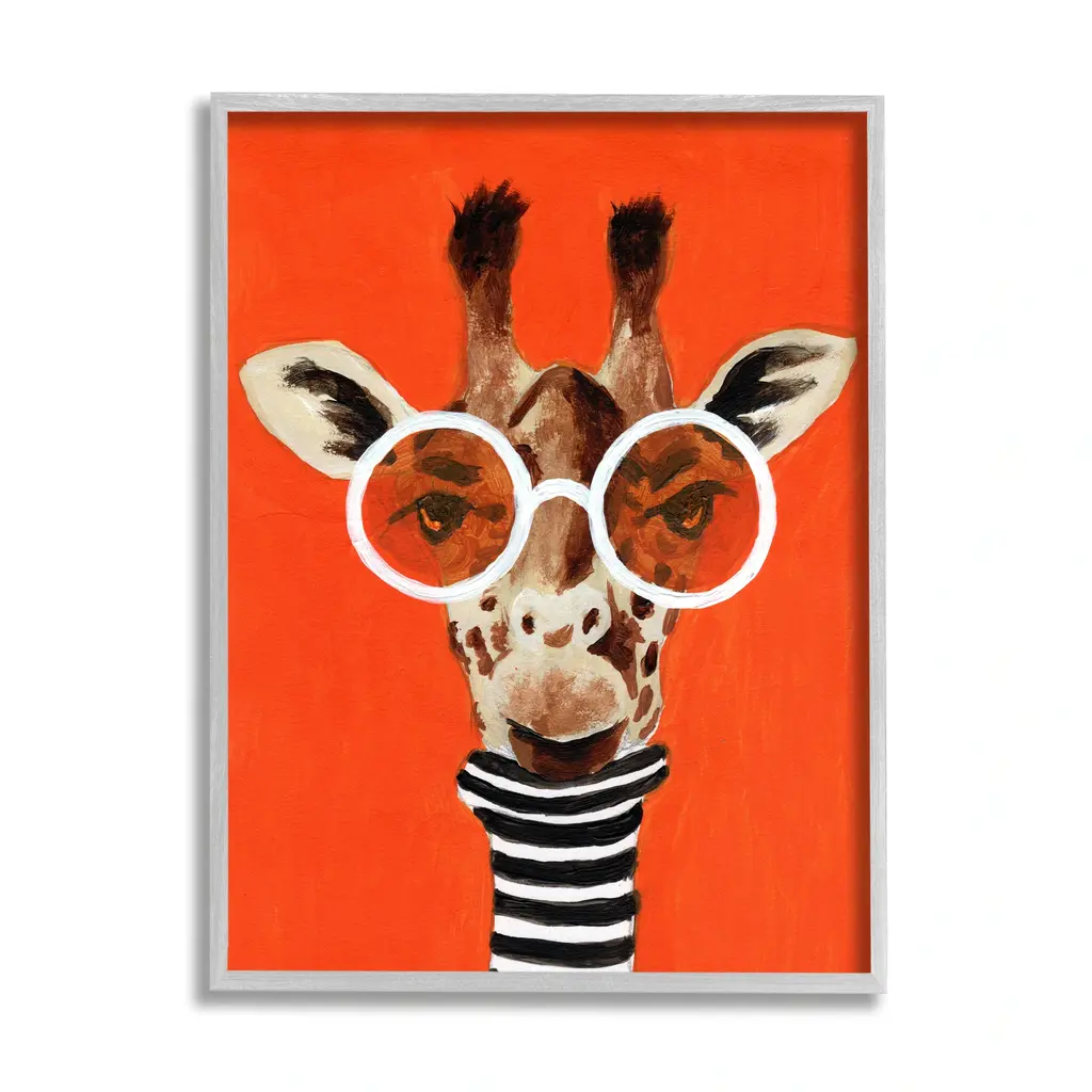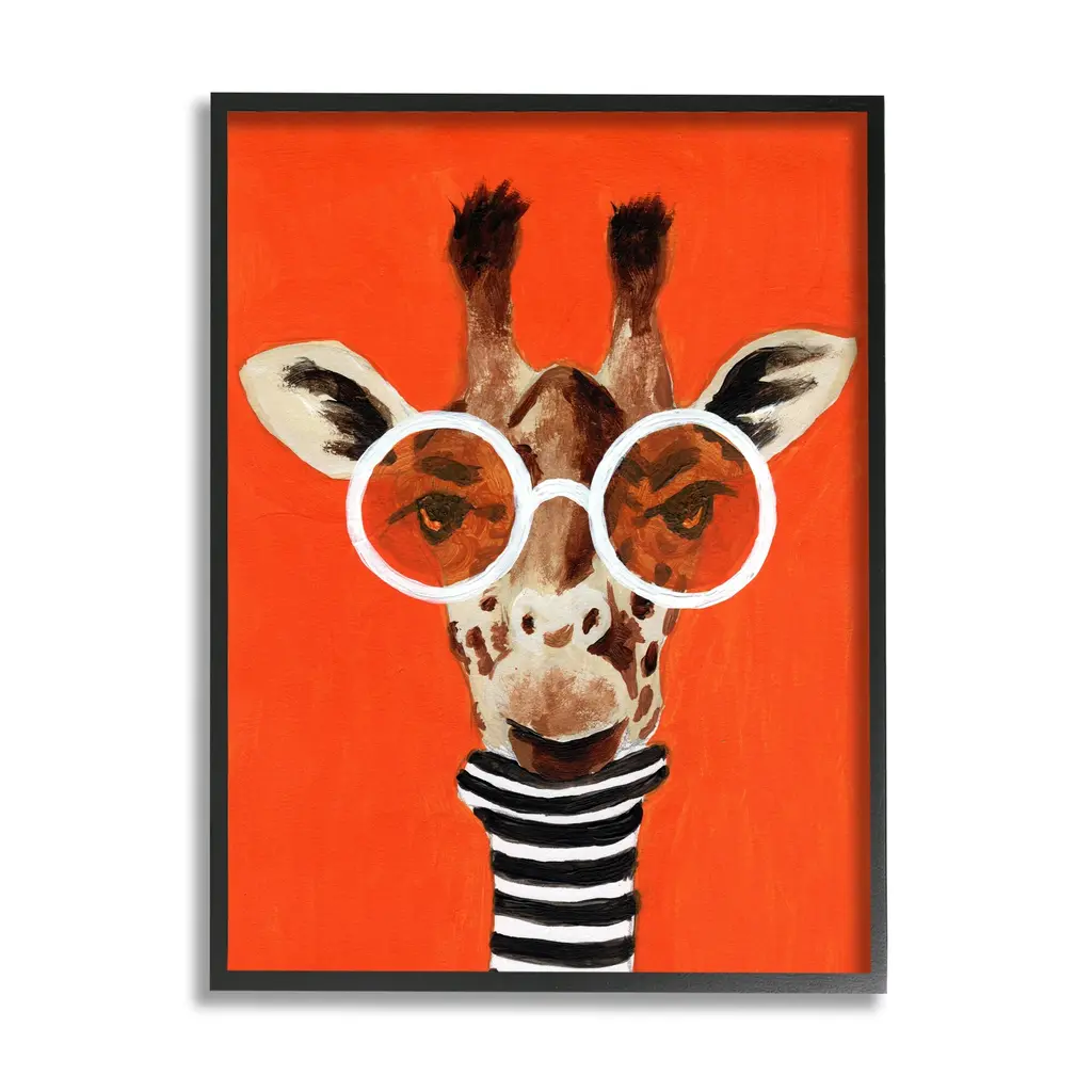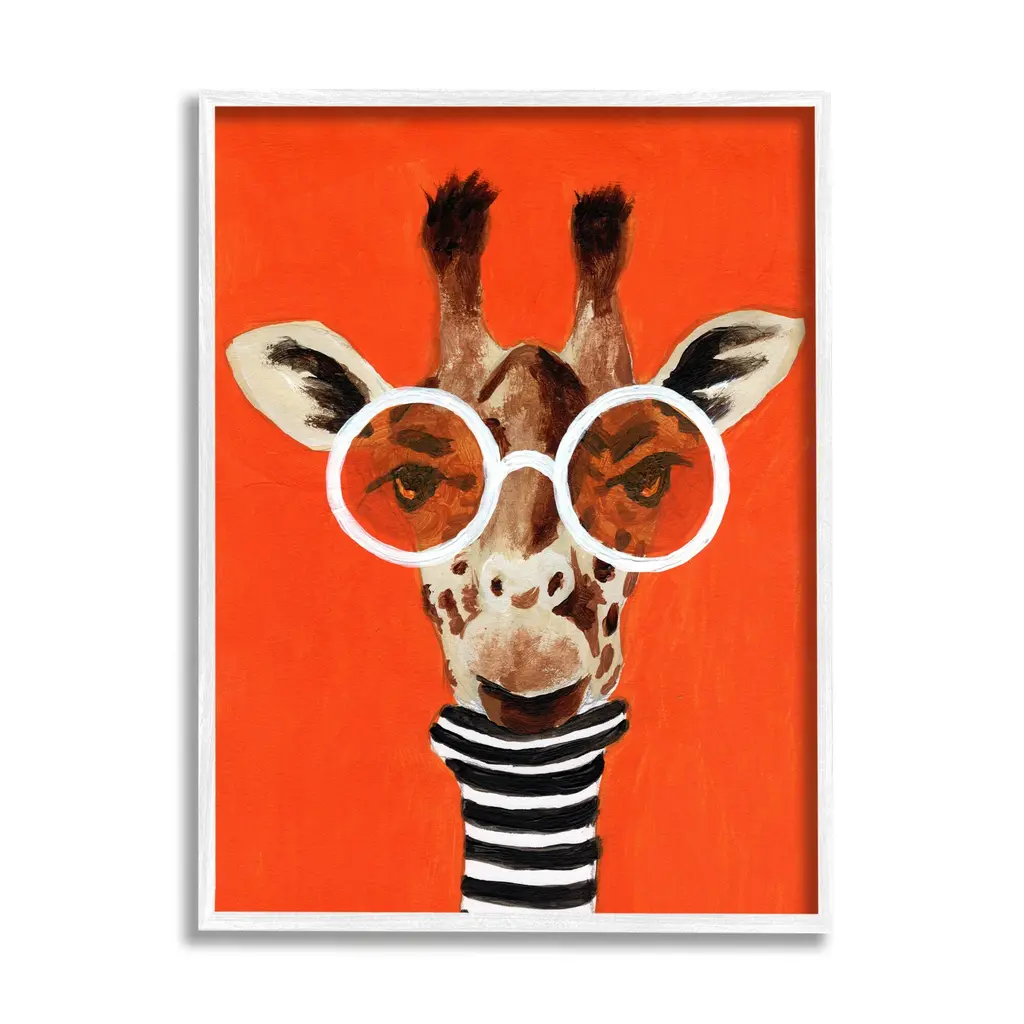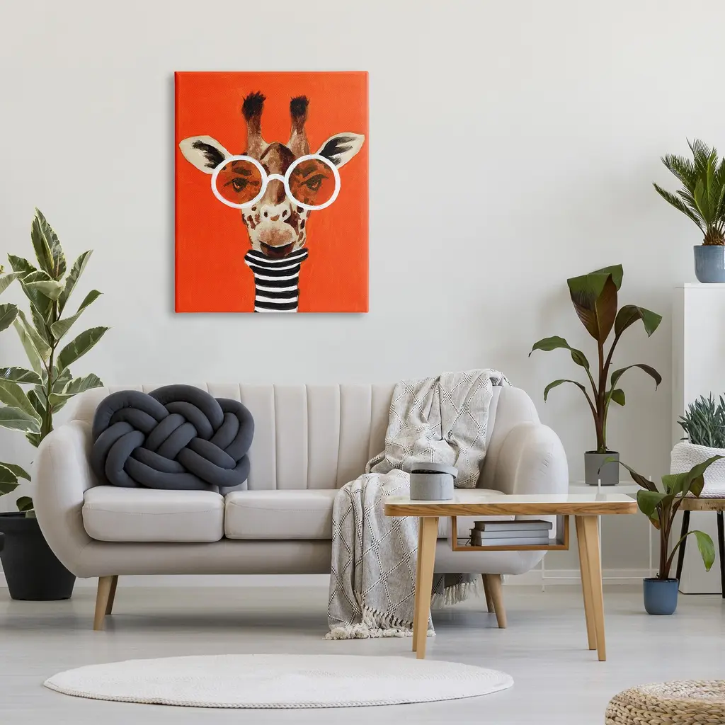 We create our stretched canvas to the highest standards. Using only the highest quality inks and canvas on Mimaki printers, we hand-cut and stretch each piece over a 1.5-inch thick wooden frame for hanging. As a result, the art comes ready to hang on the sturdy ledge with no installation required. Stupell Wall Art is made in the USA.Features: Dimensions: 16 x 1.5 x 20 InchesStretched Canvas Sizes Include Standard: 16 x 1.5 x 20 Large: 20 x 1.5 x 30 X-Large: 30 x 1.5 x 40 Oversized: 36 x 1.5 x 48Wall Art is Ready to Hang - No Installation or Hardware Needed. For Easy Set Up Lean or Layer Artwork on Shelf or Against Wall.Our stretched canvas is created with the highest standards. We use only the highest quality inks and canvas on our in house Mimaki printers, and then hand cut and stretch each piece over a 1.5 inch thick wooden frame for hanging. Made In USA.Artwork Relates To: Painting, Portrait, Animal, Mammal, Wildlife, Giraffe, GlassesDesign by Coco de Paris