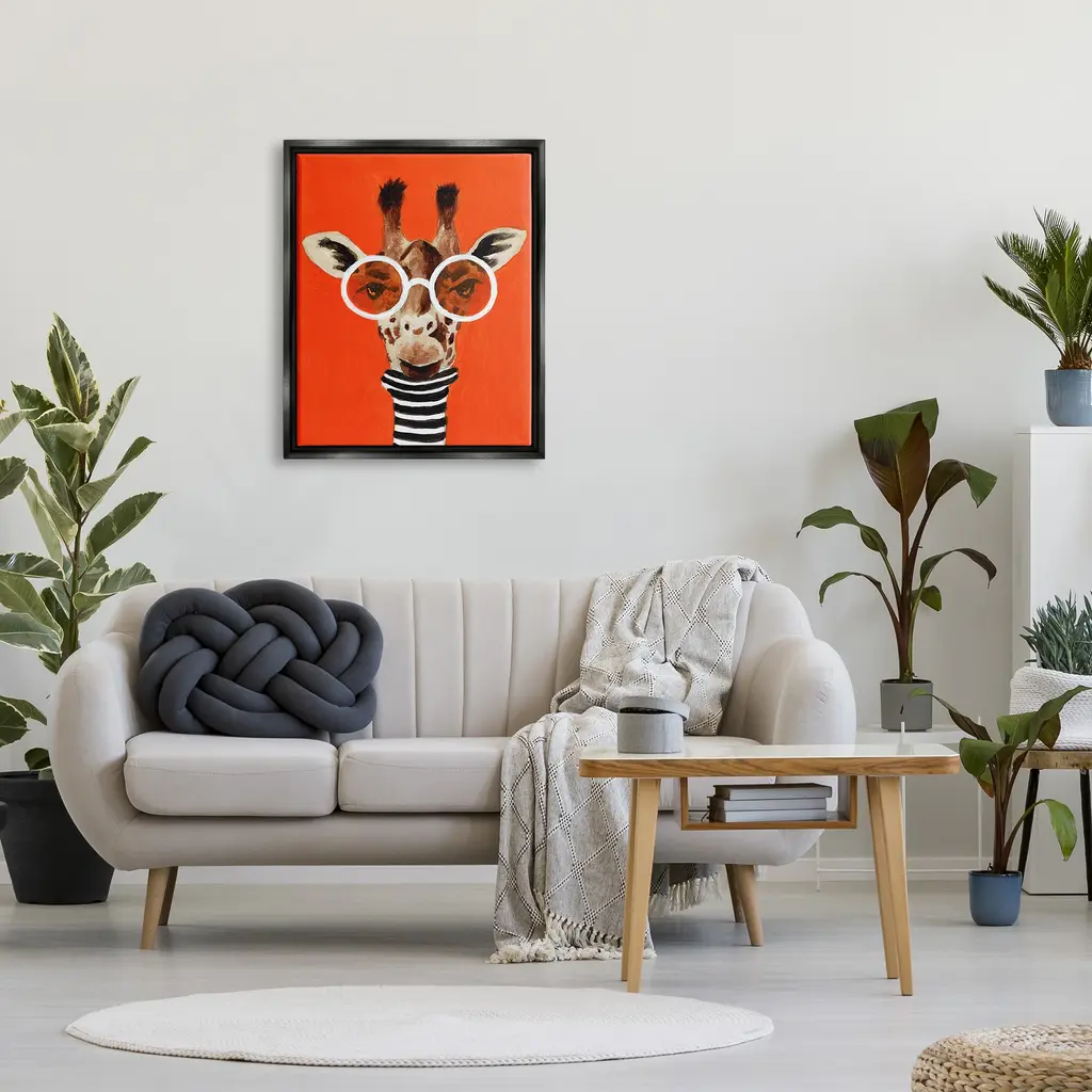 Elevate your home or office to the next level with Stupell Framed Floating Canvas Wall Art. Our premium hand-stretched canvas is mounted securely into a sturdy lightweight frame. The museum-style gap between the wrapped canvas and the box frame gives the illusion of floating artwork. Stupell Wall Art is made in the USA.Features: Dimensions: 17 x 1.7 x 21 Frame, 16 x 1.5 x 20 Canvas ArtFloating Frame Sizes Include Standard: 17 x 1.7 x 21 Oversized: 25 x 1.7 x 31Wall Art is Ready to Hang - No Installation or Hardware Needed. For Easy Set Up Lean or Layer Artwork on Shelf or Against Wall.Our elevated 1.7" Thick Floating Frame is the perfect complement to our canvas style Wall Art. We use only the highest quality inks in house with industry leading printing solutions. Canvas is hand stretched over a durable wood foundation and then mounted securly into a Modern Box Frame. Made in the USA.Artwork Relates To: Painting, Portrait, Animal, Mammal, Wildlife, Giraffe, GlassesDesign by Coco de Paris