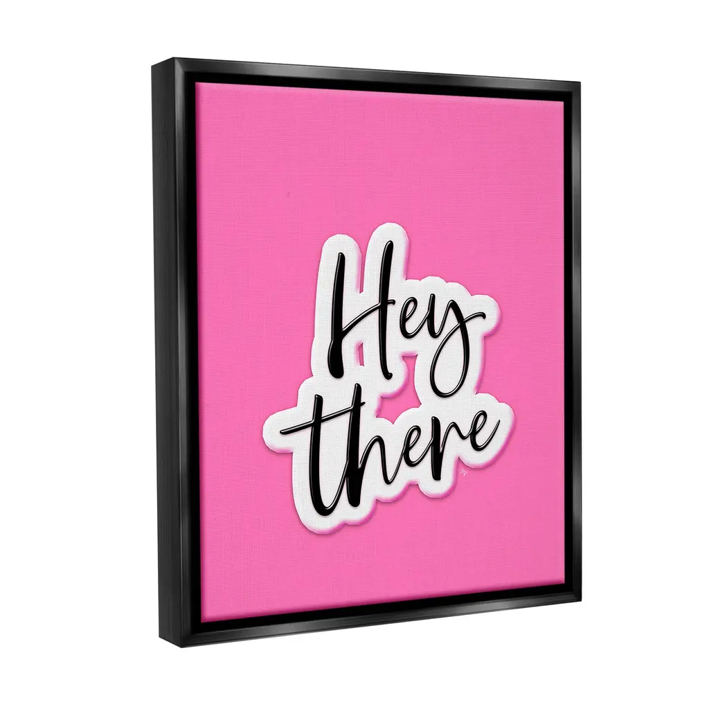 Elevate your home or office to the next level with Stupell Framed Floating Canvas Wall Art. Our premium hand-stretched canvas is mounted securely into a sturdy lightweight frame. The museum-style gap between the wrapped canvas and the box frame gives the illusion of floating artwork. Stupell Wall Art is made in the USA.Features: Dimensions: 17 x 1.7 x 21 Frame, 16 x 1.5 x 20 Canvas ArtFloating Frame Canvas Products are available in sizes 17"x21" and 25"x31". All Floating Frame Canvas Products have a 1.7" Depth.Wall Art is Ready to Hang with Hardware Free Hanging. No Installation required. For Easy Set Up Lean or Layer Artwork on Shelf or Against Wall. Artwork is Permently Fixed into the Frame.Our elevated 1.7" Thick Floating Frame is the perfect complement to our canvas style Wall Art. We use only the highest quality inks in house with industry leading printing solutions. Canvas is hand stretched over a durable wood foundation and then mounted securly into a Modern Box Frame. Made in the USA.Artwork Relates To: Phrase, Inspirational, Pink, Bold, Greeting, Hey ThereDesign by Martina Pavlova