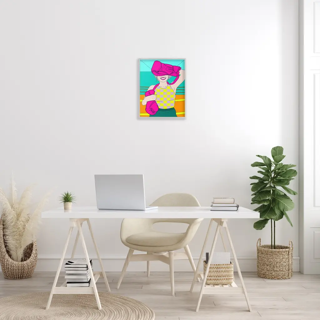 Add dimension to any room with our textured Framed Giclee Artwork. Our framed artwork is securely mounted into a 1.5-inch thick wood grain frame and ready to hang. Frames are available in three alluring styles: black, gray farmhouse and white. In addition, you should check out our oversized options if you want a statement piece. Stupell Wall Art is made in the USA.Features: Dimensions: 11 x 1.5 x 14 FramedFramed Giclee Products are available in the sizes 11"x14", 16"x20" or 24"x30". All Framed Giclee Products have a 1.5" Depth. Wall Art is Ready to Hang with Hardware Free Hanging. No installation required. For Easy Set Up Lean or Layer Artwork on Shelf or Against Wall.Our giclée prints are carefully mounted on a durable MDF backing, and then perfectly finished in a 1.5 inch thick woodgrain frame. Mounted frame colors include black, gray farmhouse and white. Made In USA.Artwork Relates To: Glove, Person, Boxing Glove, Boxing, Boxer, Kickboxing, Exercise, Workout, Woman, Modern, FitnessDesign by Grace Popp