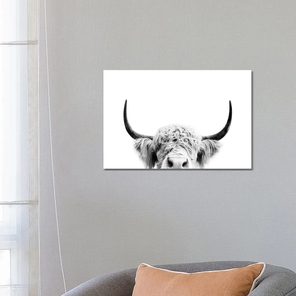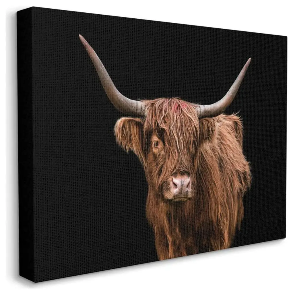 Stupell Bold Longhorn Portrait Black White Cattle Photography Canvas Wall Art - Grey - 30 X 24