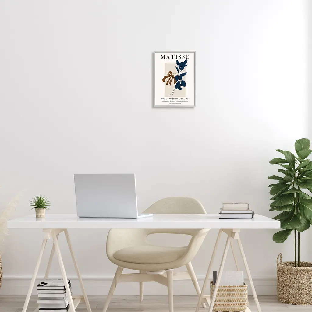 Stupell Bold Modern Botanicals Leaf Silhouettes Matisse Text Framed Wall Art - Tan - 11 X 14 - Grey