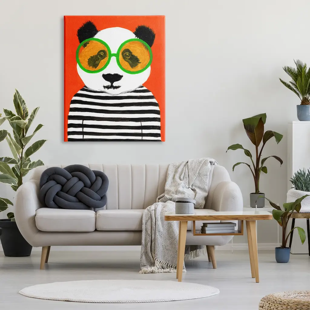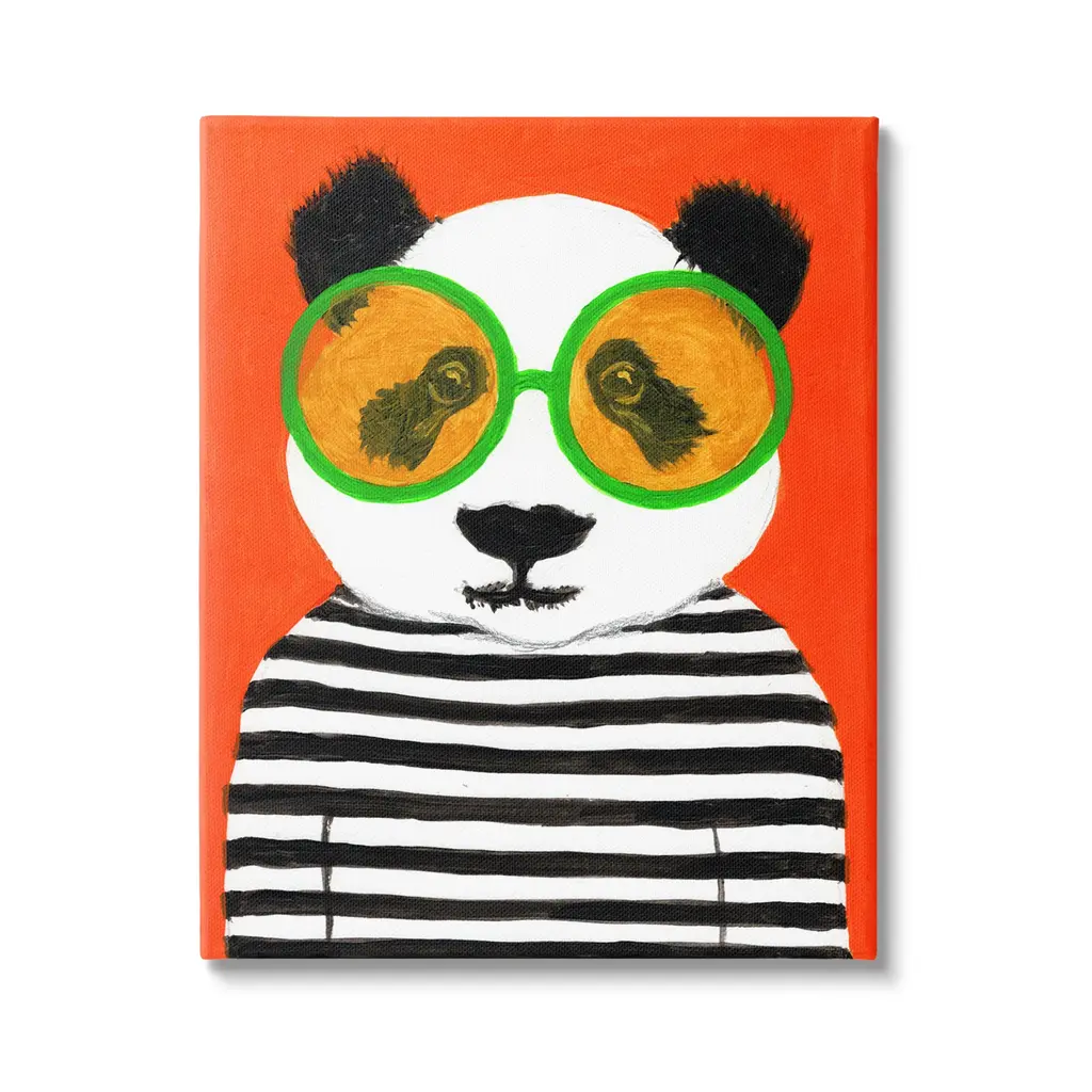 We create our stretched canvas to the highest standards. Using only the highest quality inks and canvas on Mimaki printers, we hand-cut and stretch each piece over a 1.5-inch thick wooden frame for hanging. As a result, the art comes ready to hang on the sturdy ledge with no installation required. Stupell Wall Art is made in the USA.Features: Dimensions: 16 x 1.5 x 20 InchesStretched Canvas Sizes Include Standard: 16 x 1.5 x 20 Large: 20 x 1.5 x 30 X-Large: 30 x 1.5 x 40 Oversized: 36 x 1.5 x 48Wall Art is Ready to Hang - No Installation or Hardware Needed. For Easy Set Up Lean or Layer Artwork on Shelf or Against Wall.Our stretched canvas is created with the highest standards. We use only the highest quality inks and canvas on our in house Mimaki printers, and then hand cut and stretch each piece over a 1.5 inch thick wooden frame for hanging. Made In USA.Artwork Relates To: Painting, Portrait, Animal, Mammal, Wildlife, Panda Bear, GlassesDesign by Coco de Paris