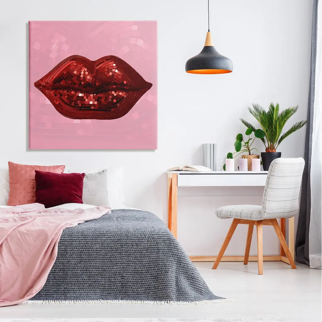 We create our stretched canvas to the highest standards. Using only the highest quality inks and canvas on Mimaki printers, we hand-cut and stretch each piece over a 1.5-inch thick wooden frame for hanging. As a result, the art comes ready to hang on the sturdy ledge with no installation required. Stupell Wall Art is made in the USA.Features: Dimensions: 17 x 1.5 x 17 InchesStretched Canvas Sizes Include Standard: 17 x 1.5 x 17 Large: 24 x 1.5 x 24 X-Large: 30 x 1.5 x 30 Oversized: 36 x 1.5 x 36Wall Art is Ready to Hang - No Installation or Hardware Needed. For Easy Set Up Lean or Layer Artwork on Shelf or Against Wall.Our stretched canvas is created with the highest standards. We use only the highest quality inks and canvas on our in house Mimaki printers, and then hand cut and stretch each piece over a 1.5 inch thick wooden frame for hanging. Made In USA.Artwork Relates To: Lips, Bold, Modern, Disco Ball, Pattern, Pink, RedDesign by Lil' Rue