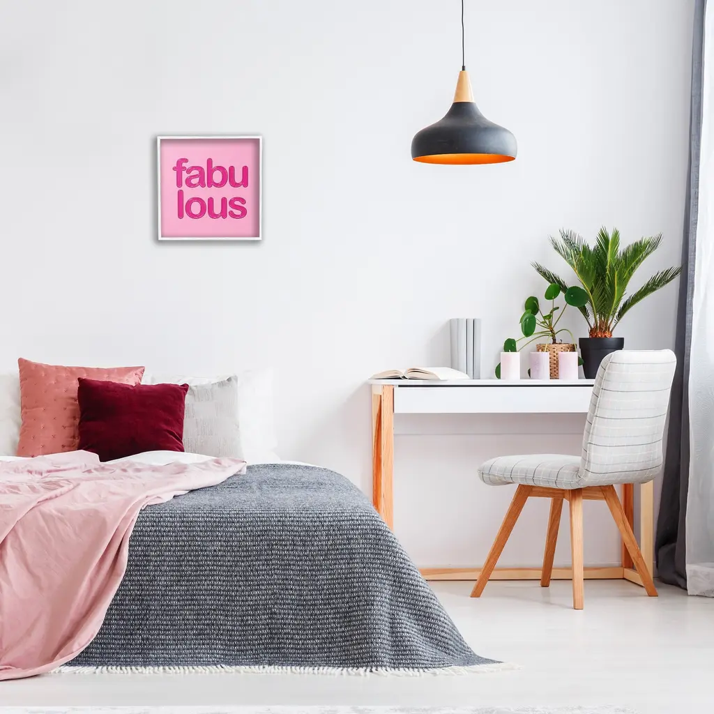Add dimension to any room with our textured Framed Giclee Artwork. Our framed artwork is securely mounted into a 1.5-inch thick wood grain frame and ready to hang. Frames are available in three alluring styles: black, gray farmhouse and white. In addition, you should check out our oversized options if you want a statement piece. Stupell Wall Art is made in the USA.Features: Dimensions: 12 x 1.5 x 12 FramedFramed Giclee Product Sizes Include 12"x12", 17"x17", and 24"x24". Framed Giclee Products have a 1.5" Depth. Wall Art is Ready to Hang with Hardware Free Hanging. No installation required. For Easy Set Up Lean or Layer Artwork on Shelf or Against Wall.Our giclée prints are carefully mounted on a durable MDF backing, and then perfectly finished in a 1.5 inch thick woodgrain frame. Mounted frame colors include black, gray farmhouse and white. Made In USA.Artwork Relates To: Phrase, Inspirational, Pink, Bold, Beauty, FabulousDesign by Martina Pavlova