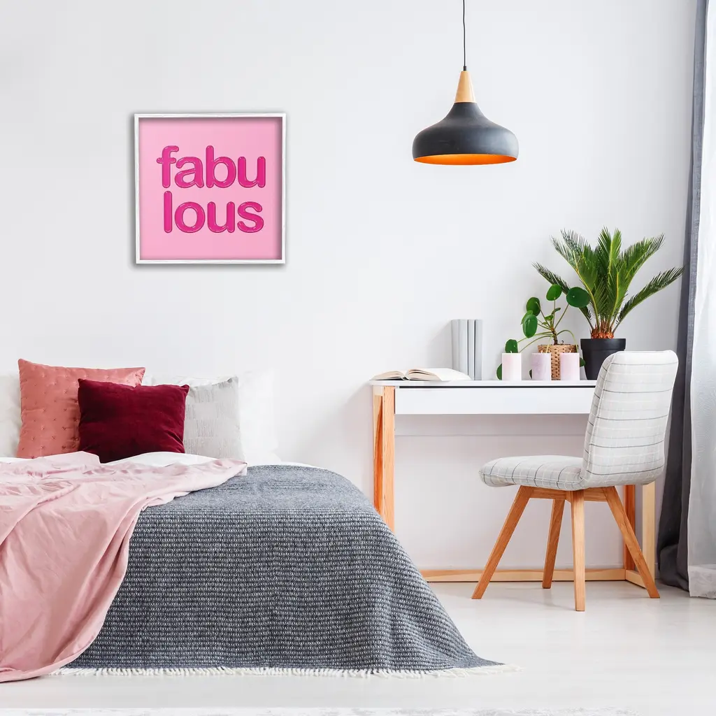 Add dimension to any room with our textured Framed Giclee Artwork. Our framed artwork is securely mounted into a 1.5-inch thick wood grain frame and ready to hang. Frames are available in three alluring styles: black, gray farmhouse and white. In addition, you should check out our oversized options if you want a statement piece. Stupell Wall Art is made in the USA.Features: Dimensions: 12 x 1.5 x 12 FramedFramed Giclee Product Sizes Include 12"x12", 17"x17", and 24"x24". Framed Giclee Products have a 1.5" Depth. Wall Art is Ready to Hang with Hardware Free Hanging. No installation required. For Easy Set Up Lean or Layer Artwork on Shelf or Against Wall.Our giclée prints are carefully mounted on a durable MDF backing, and then perfectly finished in a 1.5 inch thick woodgrain frame. Mounted frame colors include black, gray farmhouse and white. Made In USA.Artwork Relates To: Phrase, Inspirational, Pink, Bold, Beauty, FabulousDesign by Martina Pavlova
