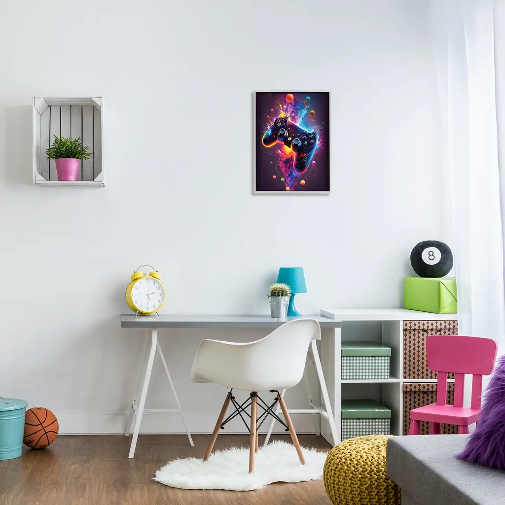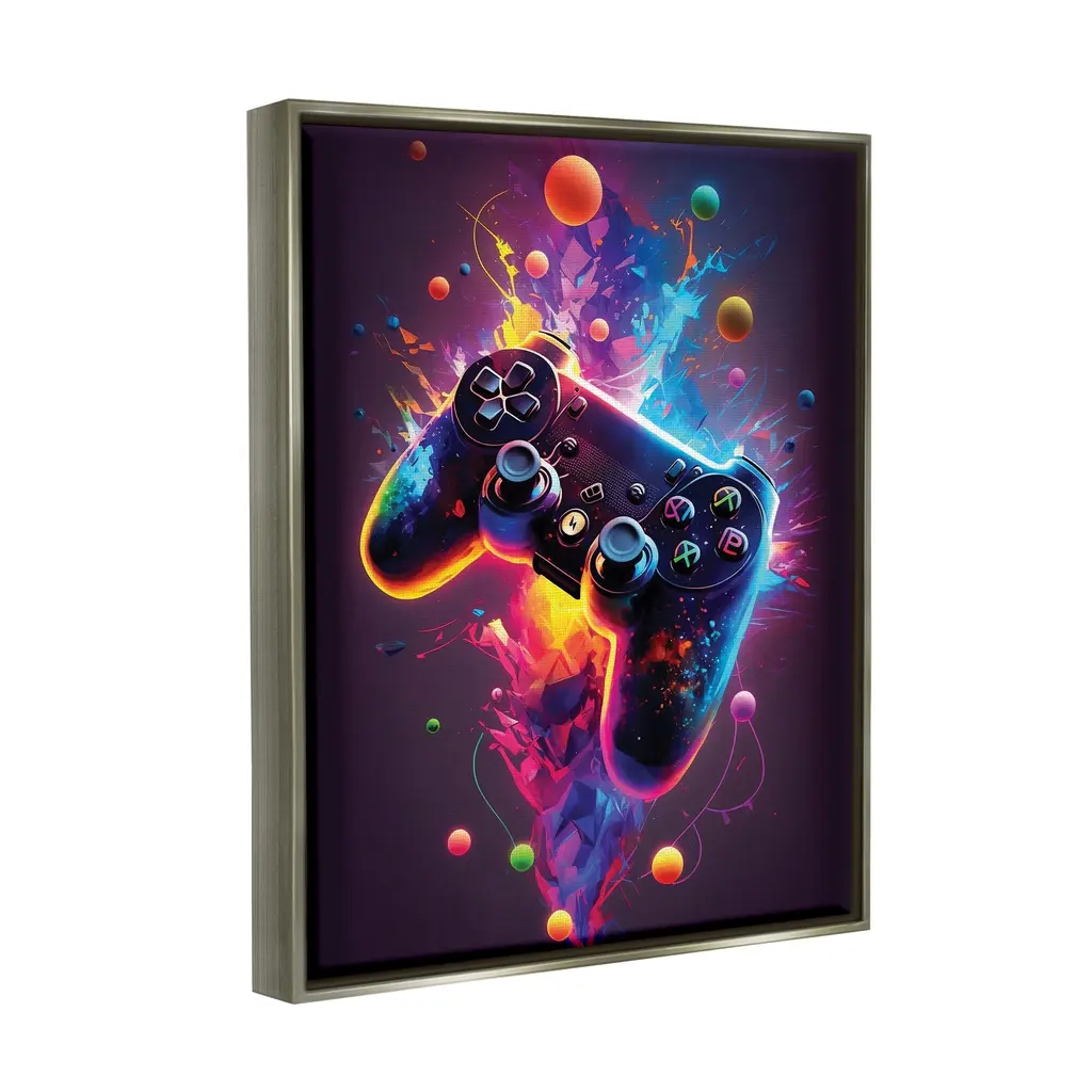 Elevate your home or office to the next level with Stupell Framed Floating Canvas Wall Art. Our premium hand-stretched canvas is mounted securely into a sturdy lightweight frame. The museum-style gap between the wrapped canvas and the box frame gives the illusion of floating artwork. Stupell Wall Art is made in the USA.Features: Dimensions: 17 x 1.7 x 21 Frame, 16 x 1.5 x 20 Canvas ArtFloating Frame Sizes Include Standard: 17 x 1.7 x 21 Oversized: 25 x 1.7 x 31Wall Art is Ready to Hang - No Installation or Hardware Needed. For Easy Set Up Lean or Layer Artwork on Shelf or Against Wall.Our elevated 1.7" Thick Floating Frame is the perfect complement to our canvas style Wall Art. We use only the highest quality inks in house with industry leading printing solutions. Canvas is hand stretched over a durable wood foundation and then mounted securly into a Modern Box Frame. Made in the USA.Artwork Relates To: Electronics, Joystick, Controller, Gaming, Video GameDesign by CyberGeek Design