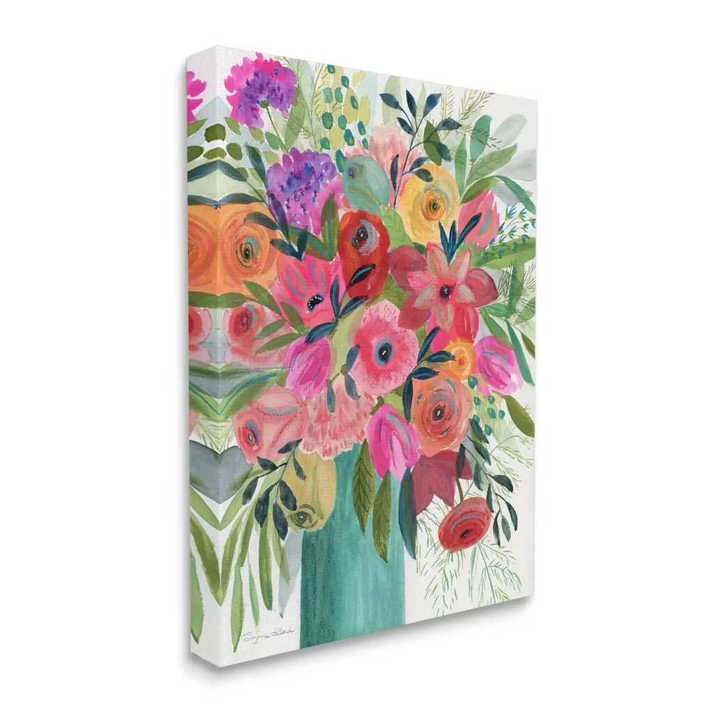 We create our stretched canvas to the highest standards. Using only the highest quality inks and canvas on Mimaki printers, we hand-cut and stretch each piece over a 1.5-inch thick wooden frame for hanging. As a result, the art comes ready to hang on the sturdy ledge with no installation required. Stupell Wall Art is made in the USA.Features: Dimensions: 16 x 1.5 x 20 InchesStretched Canvas Sizes Include Standard: 16 x 1.5 x 20 Large: 20 x 1.5 x 30 X-Large: 30 x 1.5 x 40 Oversized: 36 x 1.5 x 48Wall Art is Ready to Hang - No Installation or Hardware Needed. For Easy Set Up Lean or Layer Artwork on Shelf or Against Wall.Our stretched canvas is created with the highest standards. We use only the highest quality inks and canvas on our in house Mimaki printers, and then hand cut and stretch each piece over a 1.5 inch thick wooden frame for hanging. Made In USA.Artwork Relates To: Modern, Painting, Pattern, Collage, Flower, Floral, Botanical, Abstract, ModernDesign by Suzanne Allard