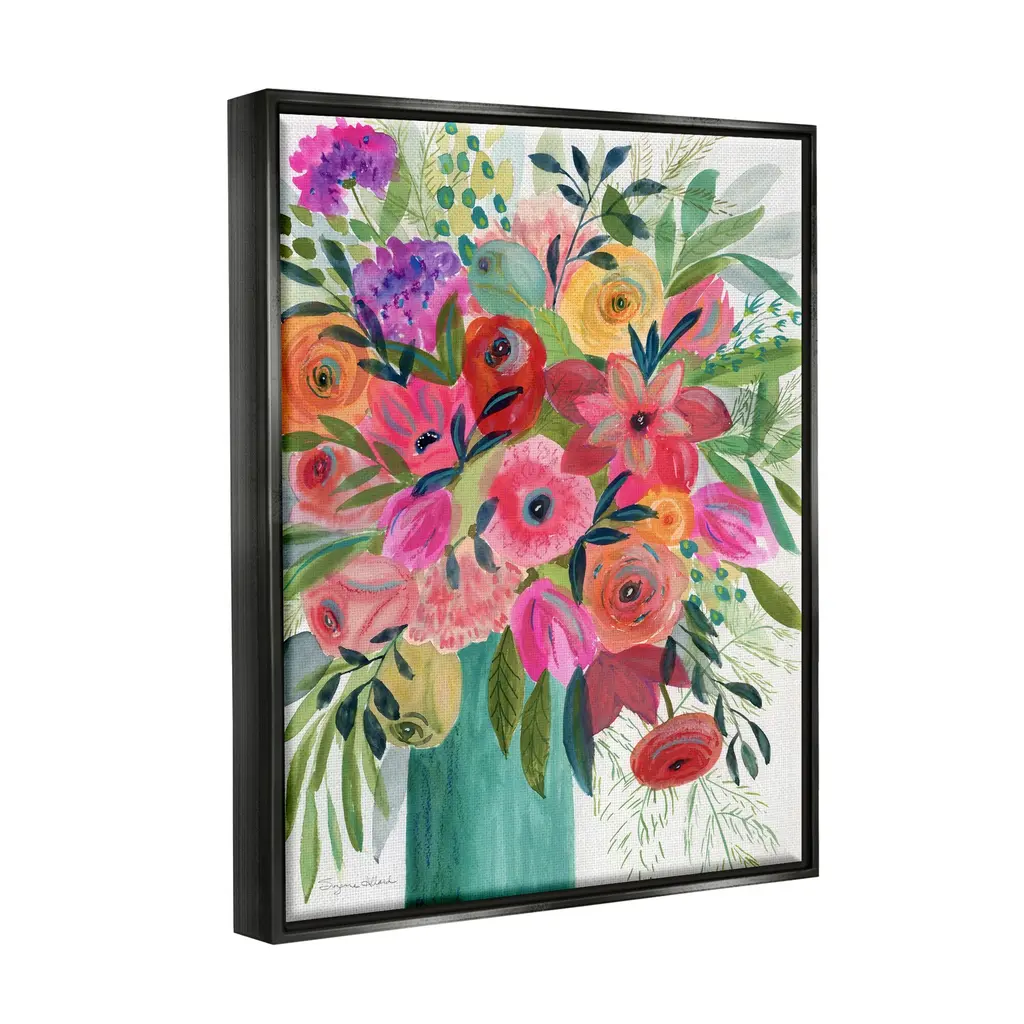 Elevate your home or office to the next level with Stupell Framed Floating Canvas Wall Art. Our premium hand-stretched canvas is mounted securely into a sturdy lightweight frame. The museum-style gap between the wrapped canvas and the box frame gives the illusion of floating artwork. Stupell Wall Art is made in the USA.Features: Dimensions: 17 x 1.7 x 21 Frame, 16 x 1.5 x 20 Canvas ArtFloating Frame Sizes Include Standard: 17 x 1.7 x 21 Oversized: 25 x 1.7 x 31Wall Art is Ready to Hang - No Installation or Hardware Needed. For Easy Set Up Lean or Layer Artwork on Shelf or Against Wall.Our elevated 1.7" Thick Floating Frame is the perfect complement to our canvas style Wall Art. We use only the highest quality inks in house with industry leading printing solutions. Canvas is hand stretched over a durable wood foundation and then mounted securly into a Modern Box Frame. Made in the USA.Artwork Relates To: Modern, Painting, Pattern, Collage, Flower, Floral, Botanical, Abstract, ModernDesign by Suzanne Allard