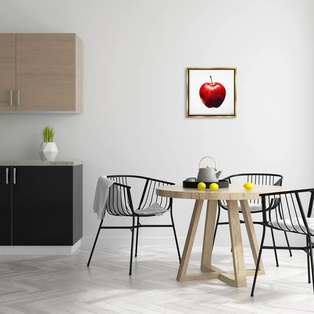 Elevate your home or office to the next level with Stupell Framed Floating Canvas Wall Art. Our premium hand-stretched canvas is mounted securely into a sturdy lightweight frame. The museum-style gap between the wrapped canvas and the box frame gives the illusion of floating artwork. Stupell Wall Art is made in the USA.Features: Dimensions: 18 x 1.7 x 18 Frame, 17 x 1.5 x 17 Canvas ArtFloating Frame Canvas Products are available in sizes 18"x18" and 25"x25". All Floating Frame Canvas Products have a 1.7" Depth.Wall Art is Ready to Hang with Hardware Free Hanging. No Installation required. For Easy Set Up Lean or Layer Artwork on Shelf or Against Wall. Artwork is Permently Fixed into the Frame.Our elevated 1.7" Thick Floating Frame is the perfect complement to our canvas style Wall Art. We use only the highest quality inks in house with industry leading printing solutions. Canvas is hand stretched over a durable wood foundation and then mounted securly into a Modern Box Frame. Made in the USA.Artwork Relates To: Apple, Food, Fruit, Minimal, ModernDesign by RB