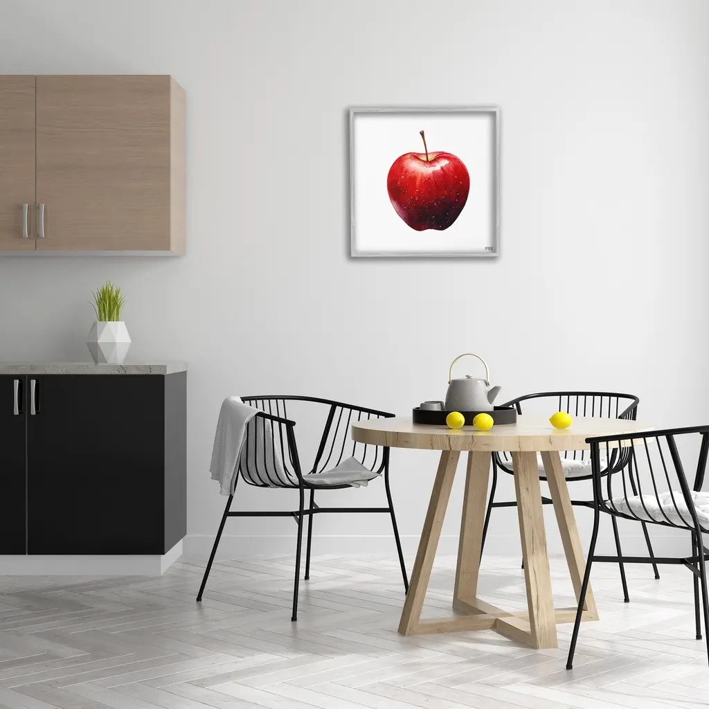 Add dimension to any room with our textured Framed Giclee Artwork. Our framed artwork is securely mounted into a 1.5-inch thick wood grain frame and ready to hang. Frames are available in three alluring styles: black, gray farmhouse and white. In addition, you should check out our oversized options if you want a statement piece. Stupell Wall Art is made in the USA.Features: Dimensions: 12 x 1.5 x 12 FramedFramed Giclee Product Sizes Include 12"x12", 17"x17", and 24"x24". Framed Giclee Products have a 1.5" Depth. Wall Art is Ready to Hang with Hardware Free Hanging. No installation required. For Easy Set Up Lean or Layer Artwork on Shelf or Against Wall.Our giclée prints are carefully mounted on a durable MDF backing, and then perfectly finished in a 1.5 inch thick woodgrain frame. Mounted frame colors include black, gray farmhouse and white. Made In USA.Artwork Relates To: Apple, Food, Fruit, Minimal, ModernDesign by RB