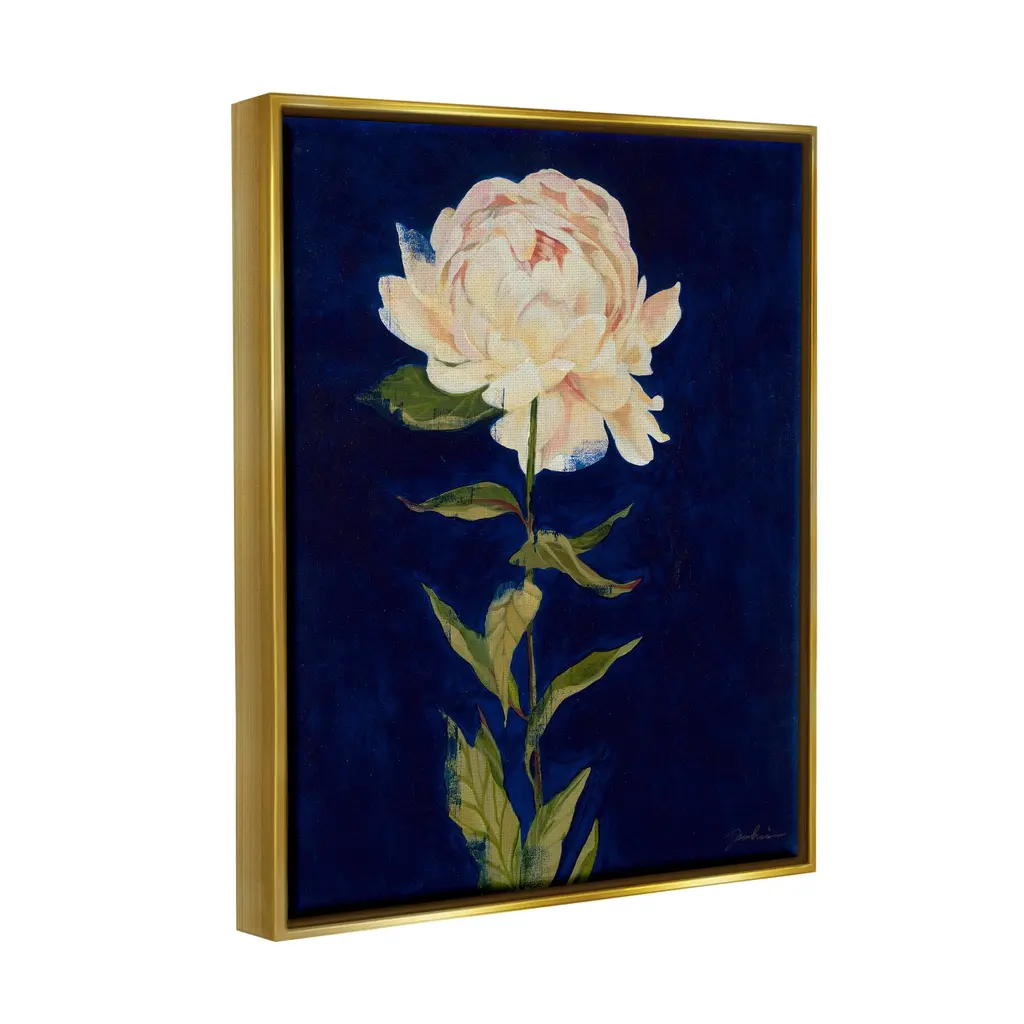 Elevate your home or office to the next level with Stupell Framed Floating Canvas Wall Art. Our premium hand stretched canvas is mounted securly into a sturdy lightweight frame. The museum style gap between wrapped canvas and box frame gives the illusion of floating artwork.Features:Floating Frame Sizes IncludeStandard: 21 x 1.7 x 17Oversized: 31 x 1.7 x 25Wall Art is Ready to Hang - No Installation or Hardware Needed. For Easy Set Up Lean or Layer Artwork on Shelf or Against Wall.Artwork Relates To: Painting, Rose, Flower, Plant, Blossom, Bloom, Blue Background, Dark, VividOur elevated 1.7" Thick Floating Frame is the perfect complement to our canvas style Wall Art. We use only the highest quality inks in house with industry leading printing solutions. Canvas is hand stretched over a durable wood foundation and then mounted securly into a Modern Box Frame. Made in the USA.Design by Liz Jardine