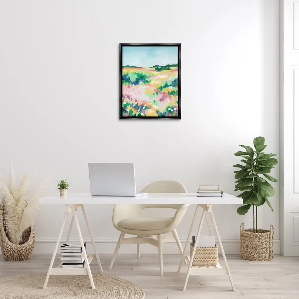 Elevate your home or office to the next level with Stupell Framed Floating Canvas Wall Art. Our premium hand-stretched canvas is mounted securely into a sturdy lightweight frame. The museum-style gap between the wrapped canvas and the box frame gives the illusion of floating artwork. Stupell Wall Art is made in the USA.Features: Dimensions: 17 x 1.7 x 21 Frame, 16 x 1.5 x 20 Canvas ArtFloating Frame Canvas Products are available in sizes 17"x21" and 25"x31". All Floating Frame Canvas Products have a 1.7" Depth.Wall Art is Ready to Hang with Hardware Free Hanging. No Installation required. For Easy Set Up Lean or Layer Artwork on Shelf or Against Wall. Artwork is Permently Fixed into the Frame.Our elevated 1.7" Thick Floating Frame is the perfect complement to our canvas style Wall Art. We use only the highest quality inks in house with industry leading printing solutions. Canvas is hand stretched over a durable wood foundation and then mounted securly into a Modern Box Frame. Made in the USA.Artwork Relates To: Painting, Flower, Plant, Field, Grassland, Nature, Countryside, Meadow, Rural, Grass, Landscape, Scenery, Abstract, ModernDesign by June Erica Vess