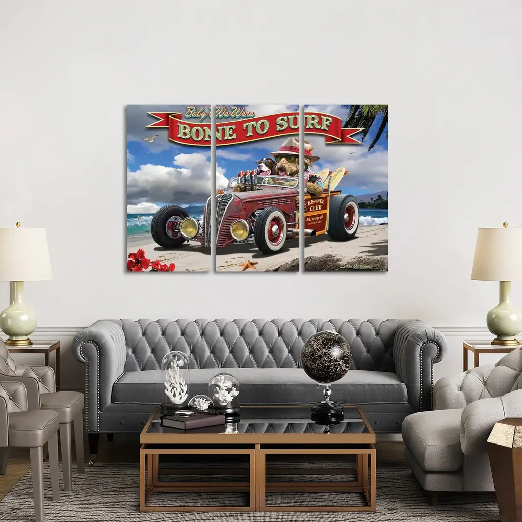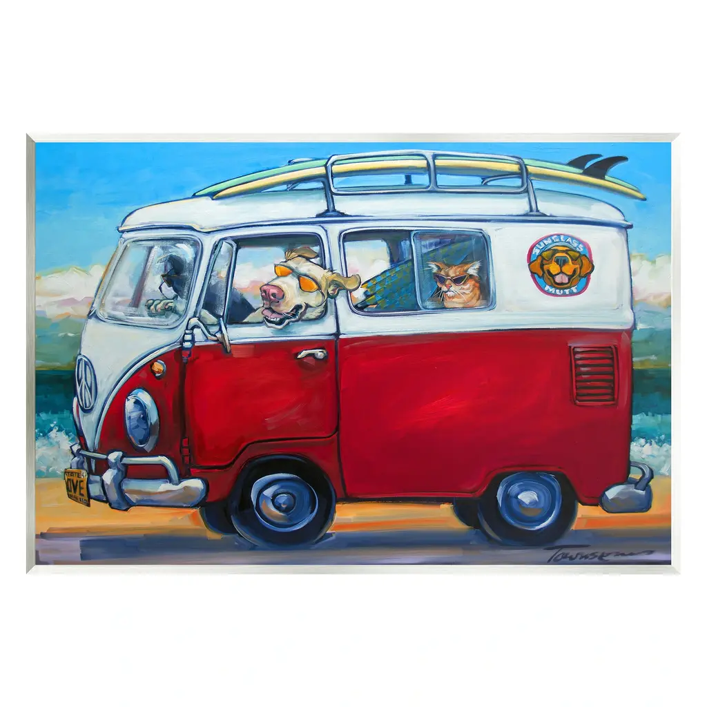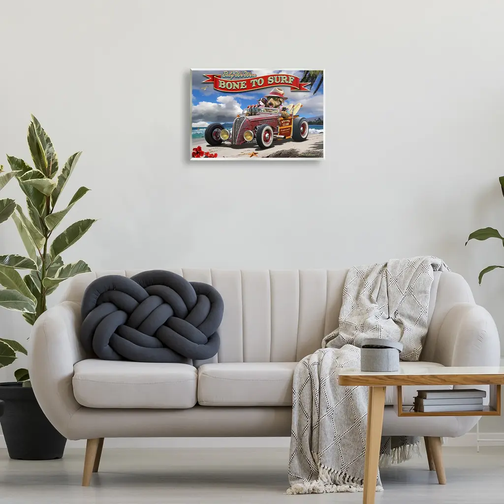 Our wall plaques start as high-quality lithograph prints mounted on durable 0.5-inch thick MDF wood. Each piece is hand finished and comes with a fresh layer of white foil on the sides to give it a crisp, clean look. Plaques arrive ready to hang without installation and come with removable plastic corners to keep them from damage in transit. Stupell Industries Wall Art is made in the USA.Features: Dimensions: 15 x 0.5 x 10 InchesWall Plaque Sizes Include Standard: 15 x 0.5 x 10 Oversized: 19 x 0.5 x 13Wall Art is Ready to Hang with Hardware Free Hanging. No installation required. For Easy Set Up Lean or Layer Artwork on Shelf or Against Wall.All of our wall plaques start off as high quality lithograph prints that are then mounted on durable 0.5 inch thick MDF wood. Each piece is hand finished and comes with a fresh layer of foil on the sides to give it a crisp clean look. Made In USA.Artwork Relates To: Car, Antique Car, Transportation, Vehicle, Dog, Beach, Shore, Coast, Summer, Baby we Were Bone to SurfDesign by Larry Grossman