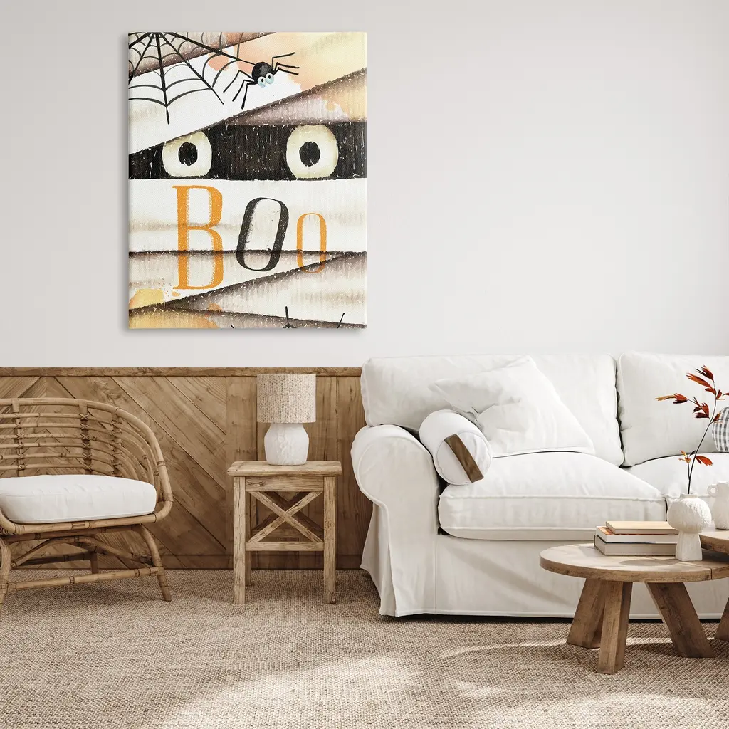 We create our stretched canvas to the highest standards. Using only the highest quality inks and canvas on Mimaki printers, we hand-cut and stretch each piece over a 1.5-inch thick wooden frame for hanging. As a result, the art comes ready to hang on the sturdy ledge with no installation required. Stupell Wall Art is made in the USA.Features: Dimensions: 16 x 1.5 x 20 InchesStretched Canvas Sizes Include Standard: 16 x 1.5 x 20 Large: 20 x 1.5 x 30 X-Large: 30 x 1.5 x 40 Oversized: 36 x 1.5 x 48Wall Art is Ready to Hang - No Installation or Hardware Needed. For Easy Set Up Lean or Layer Artwork on Shelf or Against Wall.Our stretched canvas is created with the highest standards. We use only the highest quality inks and canvas on our in house Mimaki printers, and then hand cut and stretch each piece over a 1.5 inch thick wooden frame for hanging. Made In USA.Artwork Relates To: Halloween, Seasonal, Spooky, Spider, Spider Web, Eyes, BooDesign by ND Art