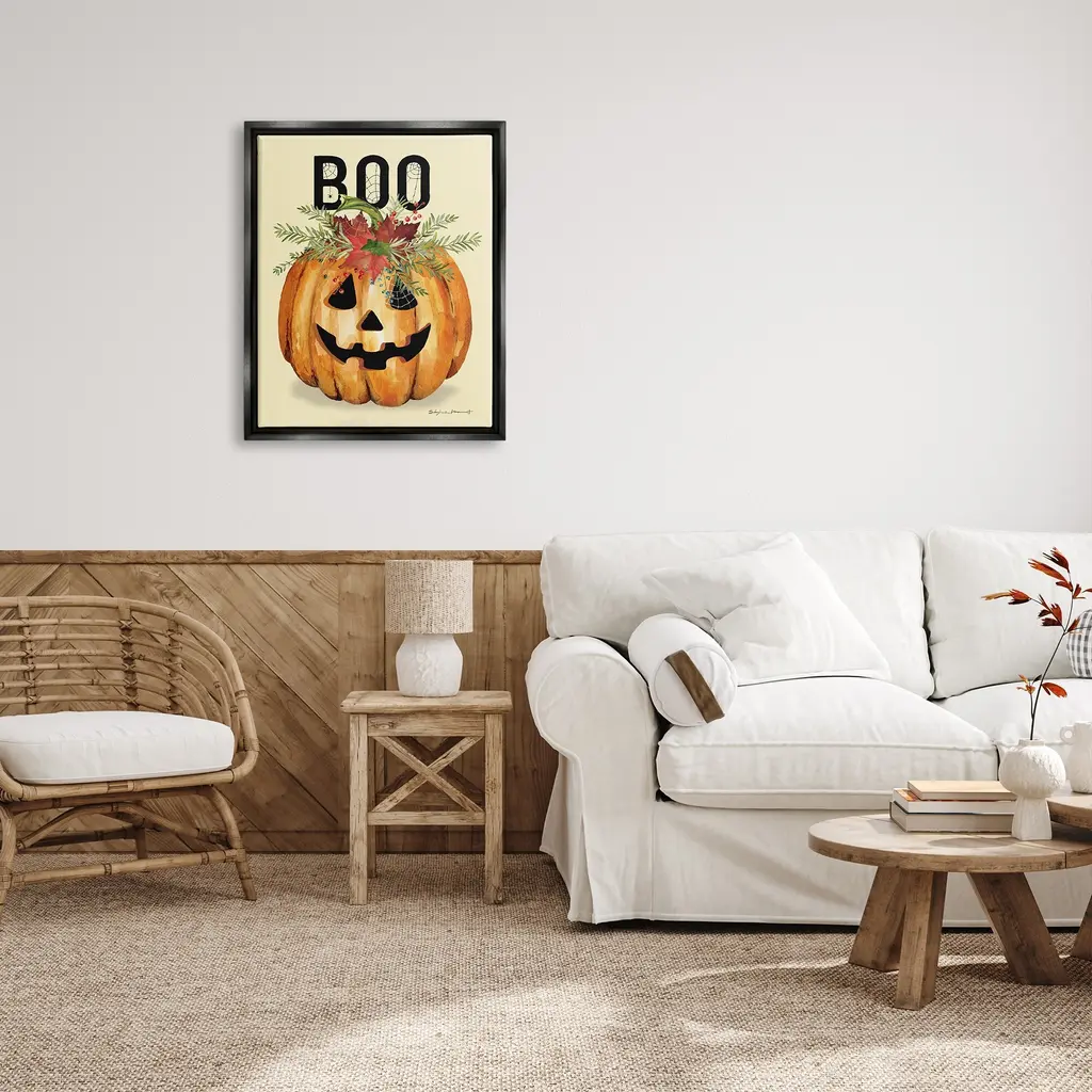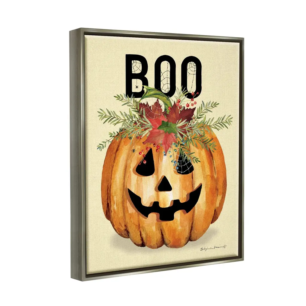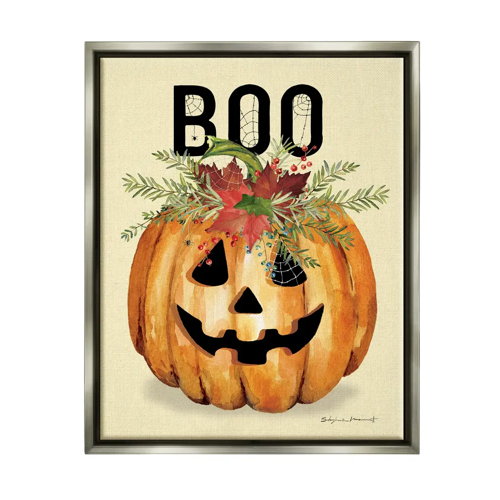 Elevate your home or office to the next level with Stupell Framed Floating Canvas Wall Art. Our premium hand-stretched canvas is mounted securely into a sturdy lightweight frame. The museum-style gap between the wrapped canvas and the box frame gives the illusion of floating artwork. Stupell Wall Art is made in the USA.Features: Dimensions: 17 x 1.7 x 21 Frame, 16 x 1.5 x 20 Canvas ArtFloating Frame Sizes Include Standard: 17 x 1.7 x 21 Oversized: 25 x 1.7 x 31Wall Art is Ready to Hang - No Installation or Hardware Needed. For Easy Set Up Lean or Layer Artwork on Shelf or Against Wall.Our elevated 1.7" Thick Floating Frame is the perfect complement to our canvas style Wall Art. We use only the highest quality inks in house with industry leading printing solutions. Canvas is hand stretched over a durable wood foundation and then mounted securly into a Modern Box Frame. Made in the USA.Artwork Relates To: Plant, Halloween, Pumpkin, Seasonal, Botanical, Jack-o-lantern, Spider Web, BooDesign by Stephanie Workman Marrott